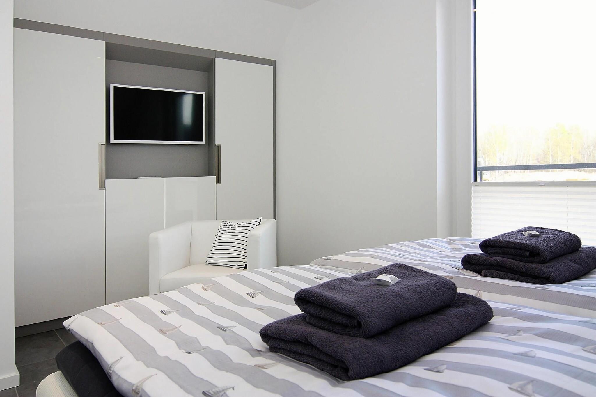 Moderne indrettet feriehus med åben pejs i den nordvestlige del af den solrige ø Usedom, med en førsteklasses beliggenhed direkte ved vandet. Havet og en lille havn ligger lige uden for døren. Dit feriehus har delvis havudsigt over Peene eller lystbådehavnen. Boksmadrasser og højkvalitets køkkenmaskiner samt galleri med loungemøbler og udsigt over havnen gør ferien perfekt. I feriekomplekset finder du forskellige servicefaciliteter såsom reception, købmandskiosk og brødservice, cykel- og bådudlejning samt shuttleservice til stranden. Derudover tilbydes sejlture og der er selvfølgelig også mulighed for at leje fortøjninger til egen båd. Detaljer: Forbrugsbaserede energiomkostninger, sengelinned, håndklæder, slutrengøring, 1 flaske vand og 1 Nespresso-kapsel pr. Aktiviteter i nærheden: Cykelture langs kysten eller udflugter med Apollo-passagerselskabet bringer dig tættere på Usedoms naturlige skønheder. For dem, der er interesseret i teknologi og historie, anbefaler vi et besøg på ubåden U-461 fra den tidligere baltiske flåde. Du kan også besøge Historisk-Teknisk Museum, som ligger i bygningerne i det tidligere militære forskningsanlæg og er kendt for sin missilkonstruktion. Derudover finder mange kunstneriske udstillinger sted på museets område Ikke egnet til personer med nedsat mobilitet