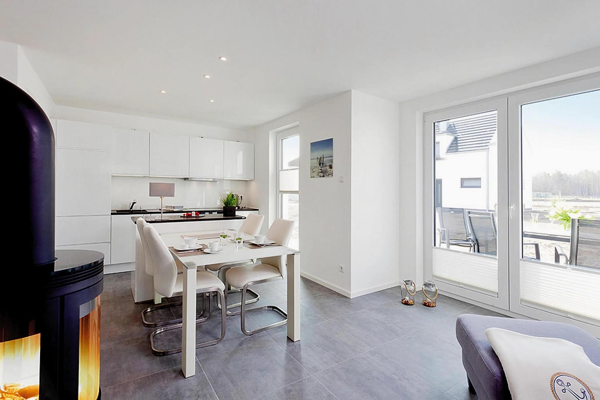 Moderne indrettet feriehus med åben pejs i den nordvestlige del af den solrige ø Usedom, med en førsteklasses beliggenhed direkte ved vandet. Havet og en lille havn ligger lige uden for døren. Dit feriehus har delvis havudsigt over Peene eller lystbådehavnen. Boksmadrasser og højkvalitets køkkenmaskiner samt galleri med loungemøbler og udsigt over havnen gør ferien perfekt. I feriekomplekset finder du forskellige servicefaciliteter såsom reception, købmandskiosk og brødservice, cykel- og bådudlejning samt shuttleservice til stranden. Derudover tilbydes sejlture og der er selvfølgelig også mulighed for at leje fortøjninger til egen båd. Detaljer: Forbrugsbaserede energiomkostninger, sengelinned, håndklæder, slutrengøring, 1 flaske vand og 1 Nespresso-kapsel pr. Usedoms skønheder. For dem, der er interesseret i teknologi og historie, anbefaler vi et besøg på ubåden U-461 fra den tidligere baltiske flåde. Du kan også besøge Historisk-Teknisk Museum, som ligger i bygningerne i det tidligere militære forskningsanlæg og er kendt for sin missilkonstruktion. Derudover finder mange kunstneriske udstillinger sted på museets område Ikke egnet til personer med nedsat mobilitet