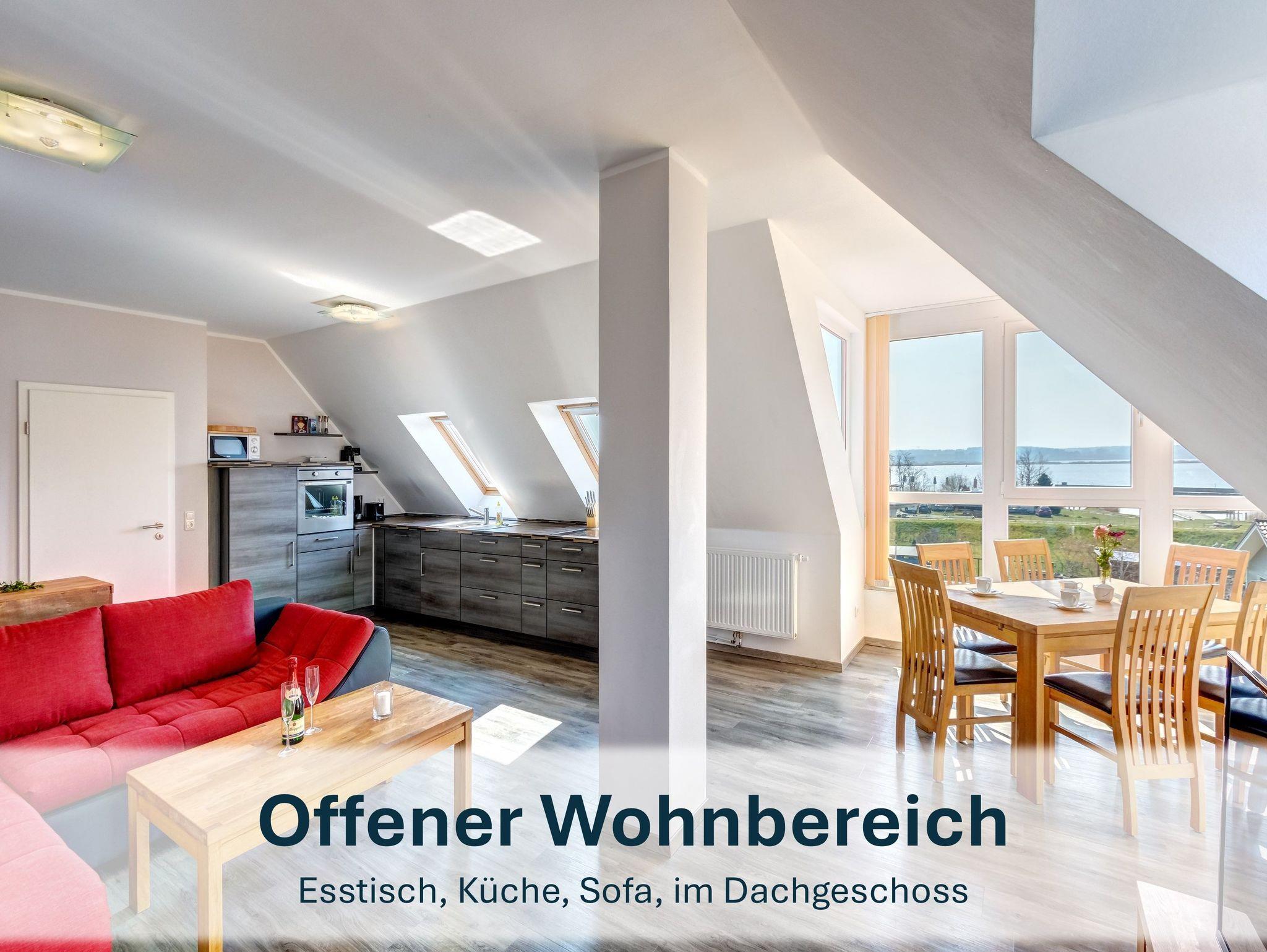 Die großzügige Maisonette-Kombination „Slup“ erstreckt sich über zwei separate Wohnungen im Ober- und Dachgeschoss der Ferienresidenz „Zum Seglerhafen“ in Peenemünde. Mit insgesamt 142m² Wohnfläche bietet sie Platz für bis zu 12 Personen (10 Erwachsene und 2 Kleinkinder) und ist damit die ideale Wahl für große Familien oder einen Urlaub mit Freunden.
