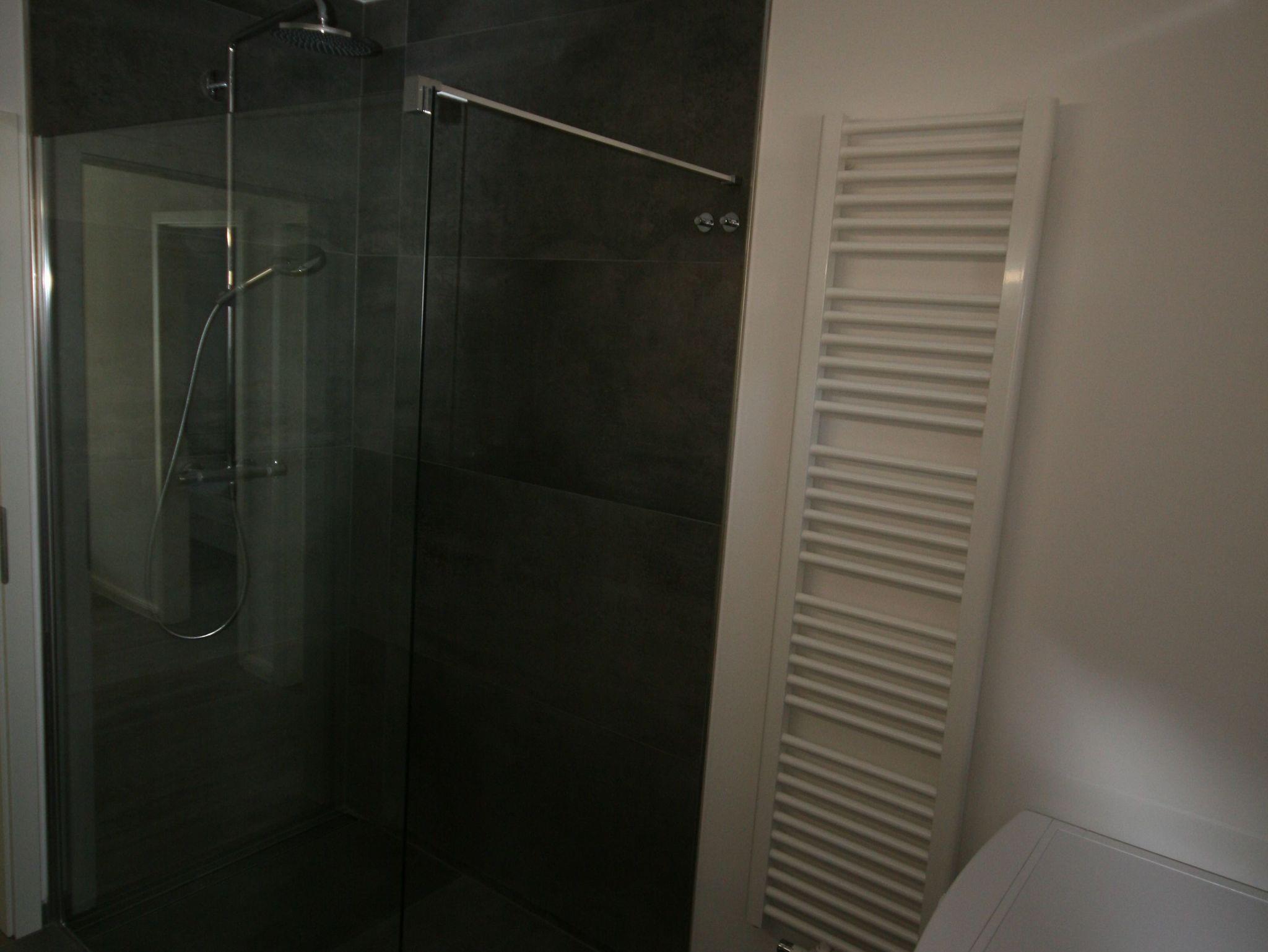 In dem Tageslichtbad mit ebenerdiger Dusche gibt es auch eine Waschmaschine, welche Ihnen während Ihres Aufenthaltes zur Verfügung steht.