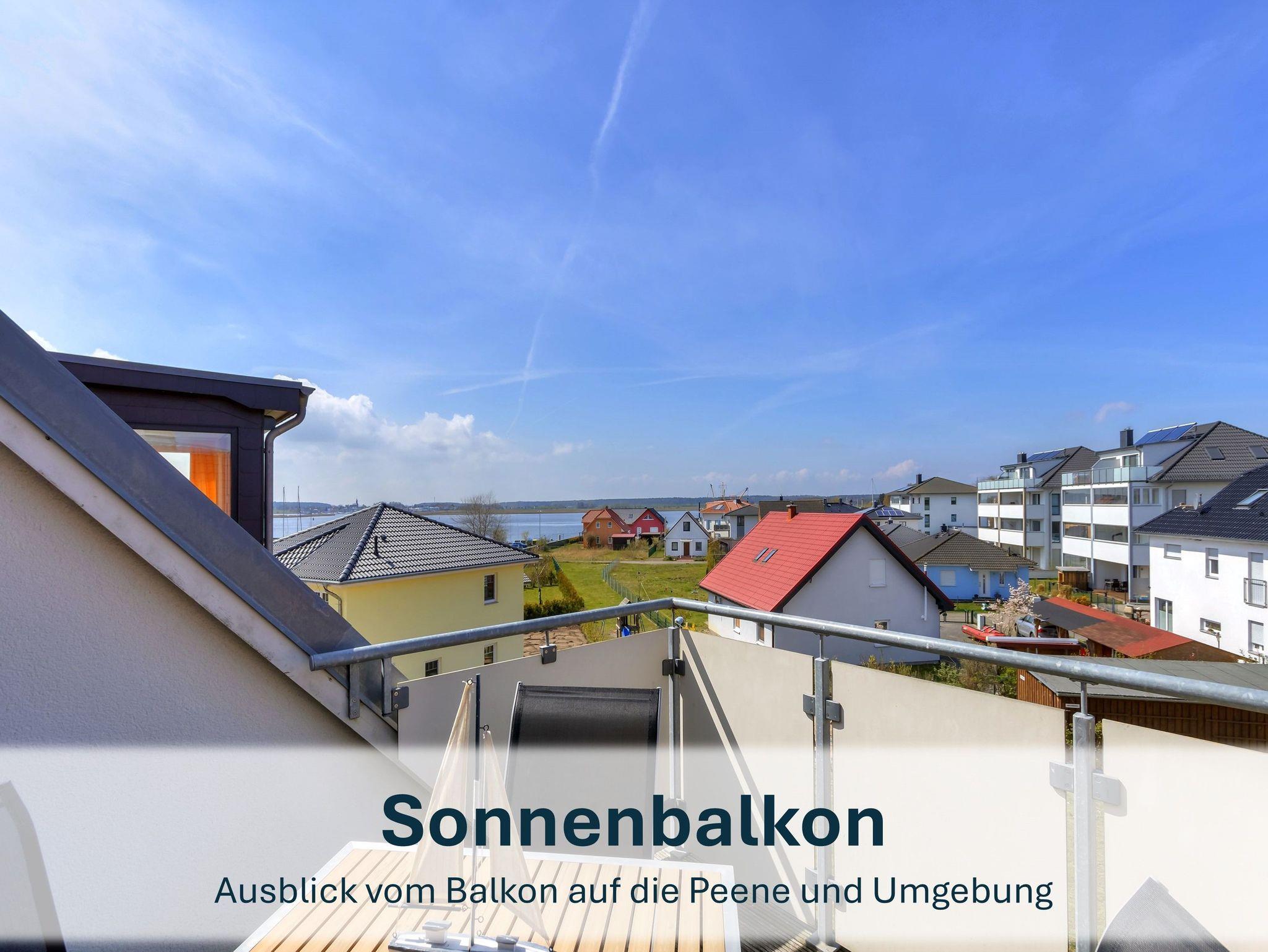 Über eine Treppe im Flur gelangen Sie in den oberen Wohnbereich mit gemütlicher Sitzecke, Essplatz und einer voll ausgestatteten offenen Küche. Vom Wohnbereich aus haben Sie Zugang zum Balkon mit Blick auf den Bodden ? perfekt für ruhige Stunden an der frischen Luft.