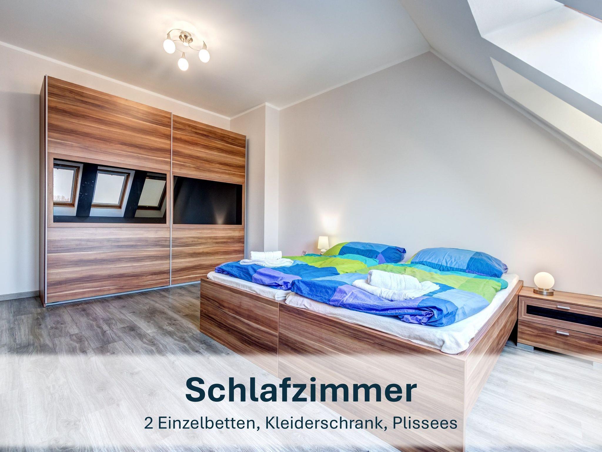 Die voll ausgestattete Küche mit Herd, Backofen, Kühlschrank mit Gefrierfach, Mikrowelle, Toaster, Kaffeemaschine, Wasserkocher und Spülmaschine lässt keine Wünsche offen. Das separate Schlafzimmer ist mit zwei Einzelbetten eingerichtet, die flexibel zusammen- oder auseinandergestellt werden können.