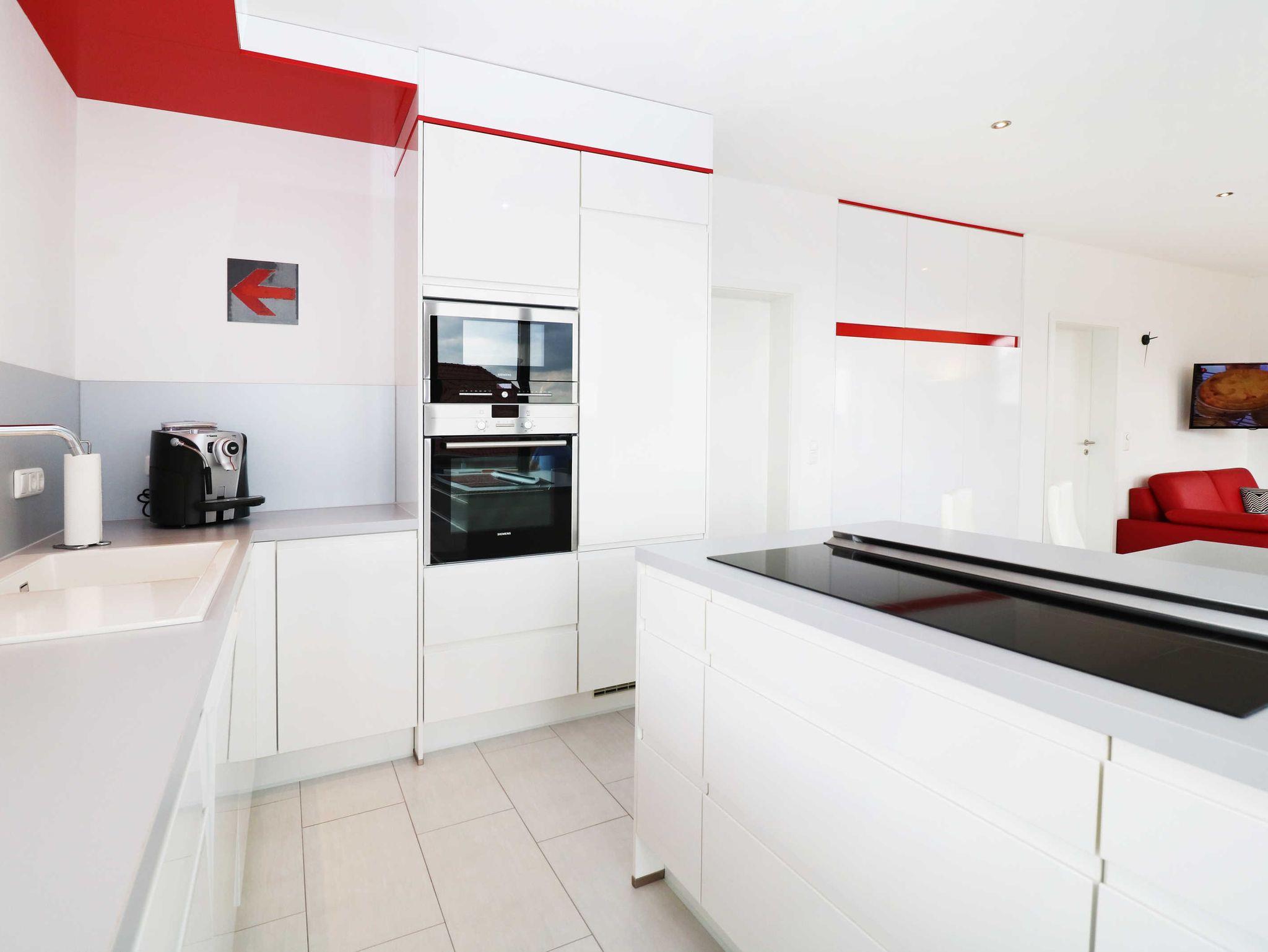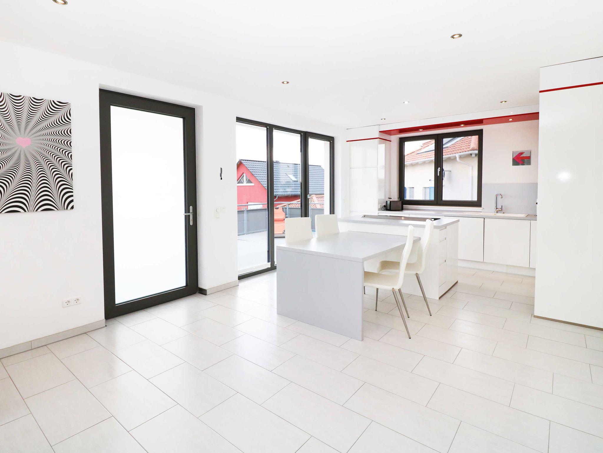 Die Ausstattung der Wohnung im Haus ist hochwertig, modern und sehr geschmackvoll. Im Wohnzimmer gehen der Essbereich und der Wohnbereich fließend ineinander über.