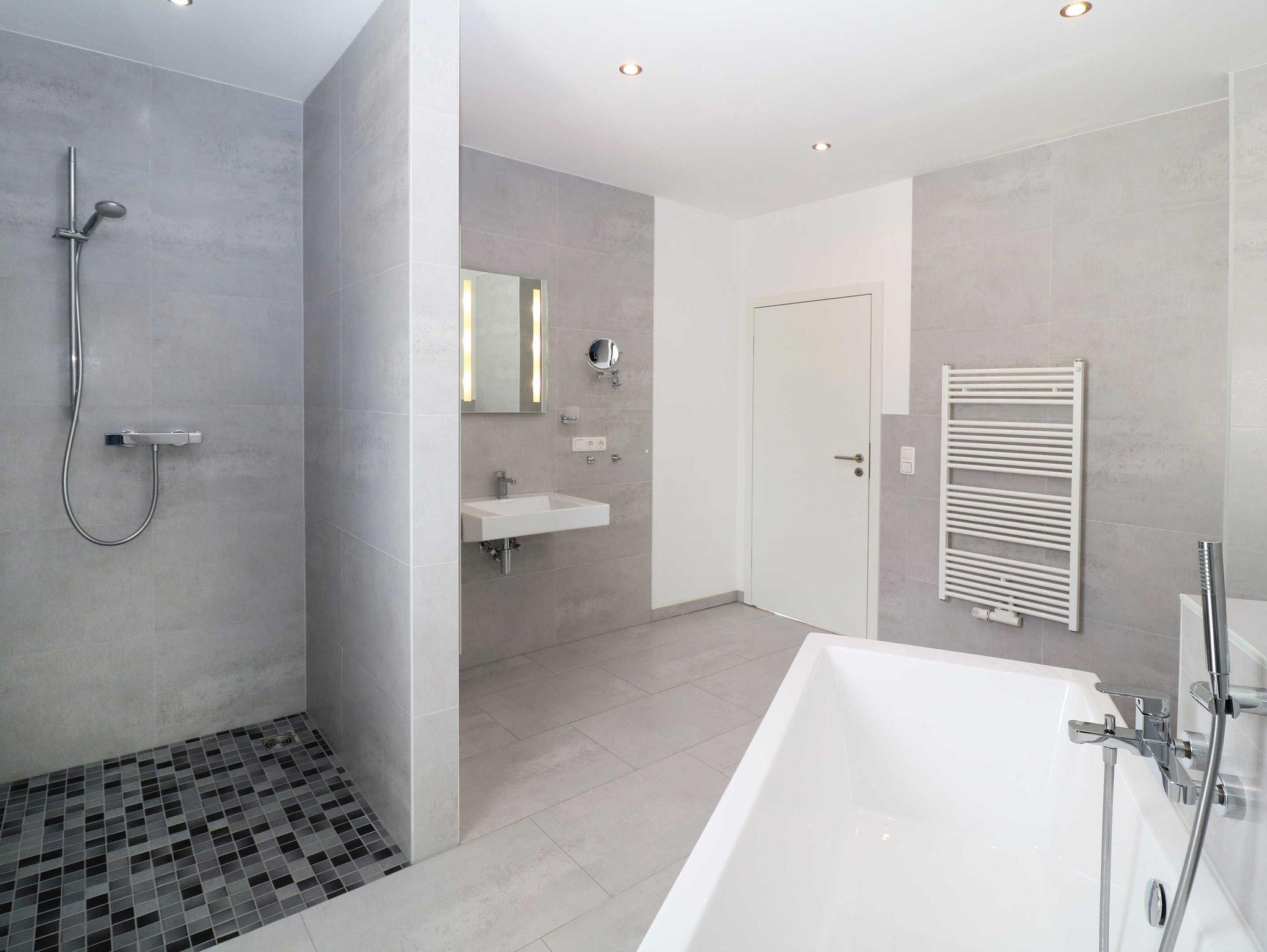 Es ist ein Bad mit Dusche und Badewanne vorhanden.