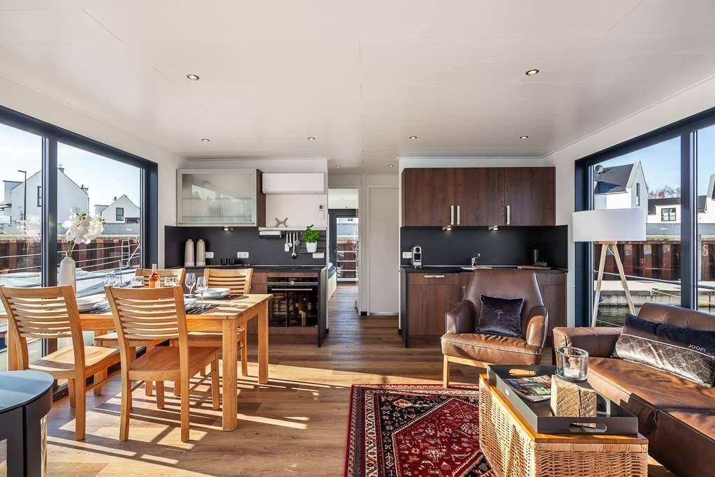 Das Floatinghouse Chalet am Meer in Peenemünde bietet 44 m² mit 3 Zimmern, 2 Schlafzimmern und Platz für 4 Personen. Offene Küche zum Wohnzimmer mit Ceranherd, Spülmaschine und Kaffeemaschine. Überdachte Terrasse mit Gartenmöbeln und Sonnenliegen, Steg direkt am See mit See- und Landschaftsblick. WLAN, TV, Klimaanlage, Kamin/Ofen, Wellness sowie Nichtraucher, familienfreundlich.