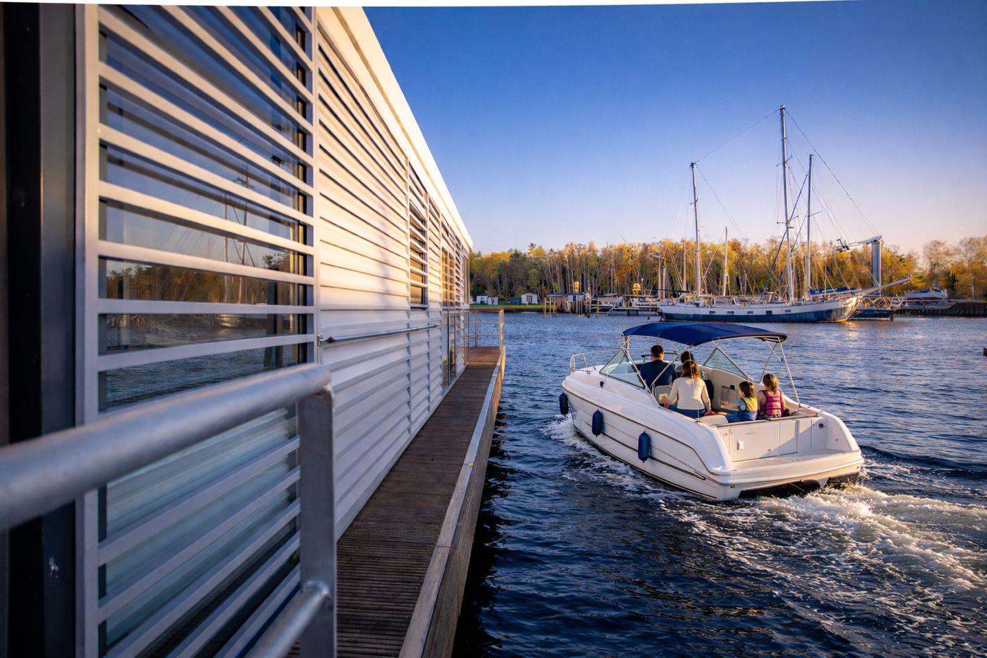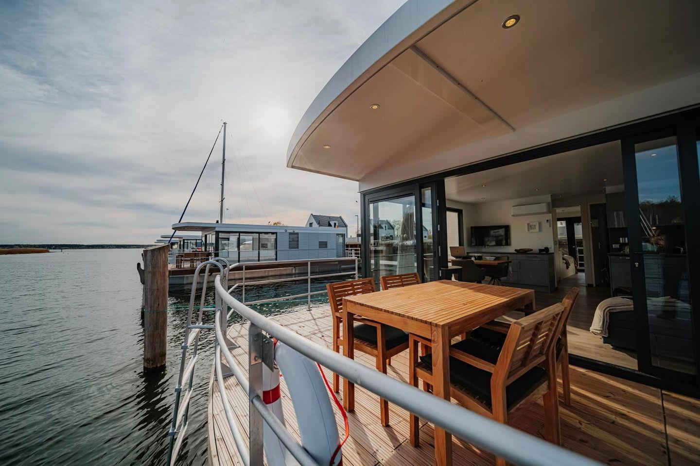 Floatinghouse Trinity: Seeblick, Terrasse & Kamin in Peenemünde