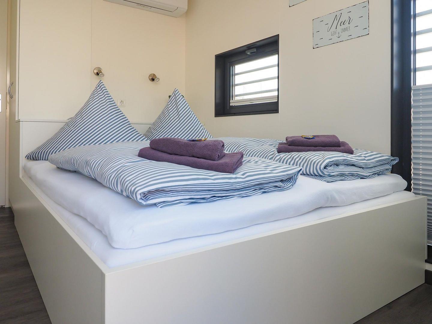 Das Floatinghouse verfügt über ein Badezimmer mit Dusche, WC, Waschbecken, Spiegel, Fenster und warmem Wasser. Bettwäsche, Handtücher und eine Erstausstattung sind inklusive. Für Ihre Sicherheit sind unter anderem Rauch- und Feuermelder, Feuerlöscher, Verbandskasten und eine Alarmanlage vorhanden; praktische Details wie Garderobe und Staubsauger runden die Ausstattung ab. Mit insgesamt vier Schlafmöglichkeiten eignet sich das Floatinghouse für einen Aufenthalt ab einer Person.