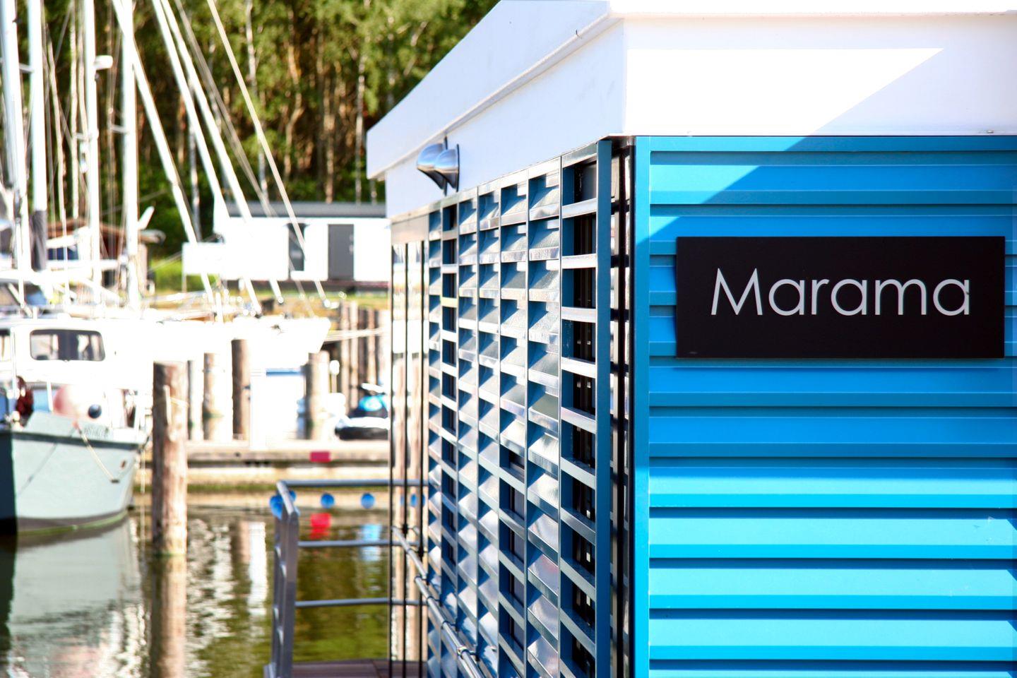 Floatinghouse Marama: freistehendes Hausboot (44 m²) direkt am See mit Seeblick und Landschaftsblick. Für bis zu 4 Gäste, 2 Schlafzimmer und 1 Bad mit Dusche. Offene Küche zum Wohnbereich mit Ceranherd, Spülmaschine und Kaffeemaschine. WLAN, TV, Klimaanlage, Heizung und Kamin/Ofen. Überdachte Terrasse mit Gartenmöbeln, Sonnenliegen und Elektrogrill am Steg. Nichtraucher, kinderfreundlich. Alarmanlage, Rauch-/Feuermelder, Feuerlöscher und Verbandskasten.