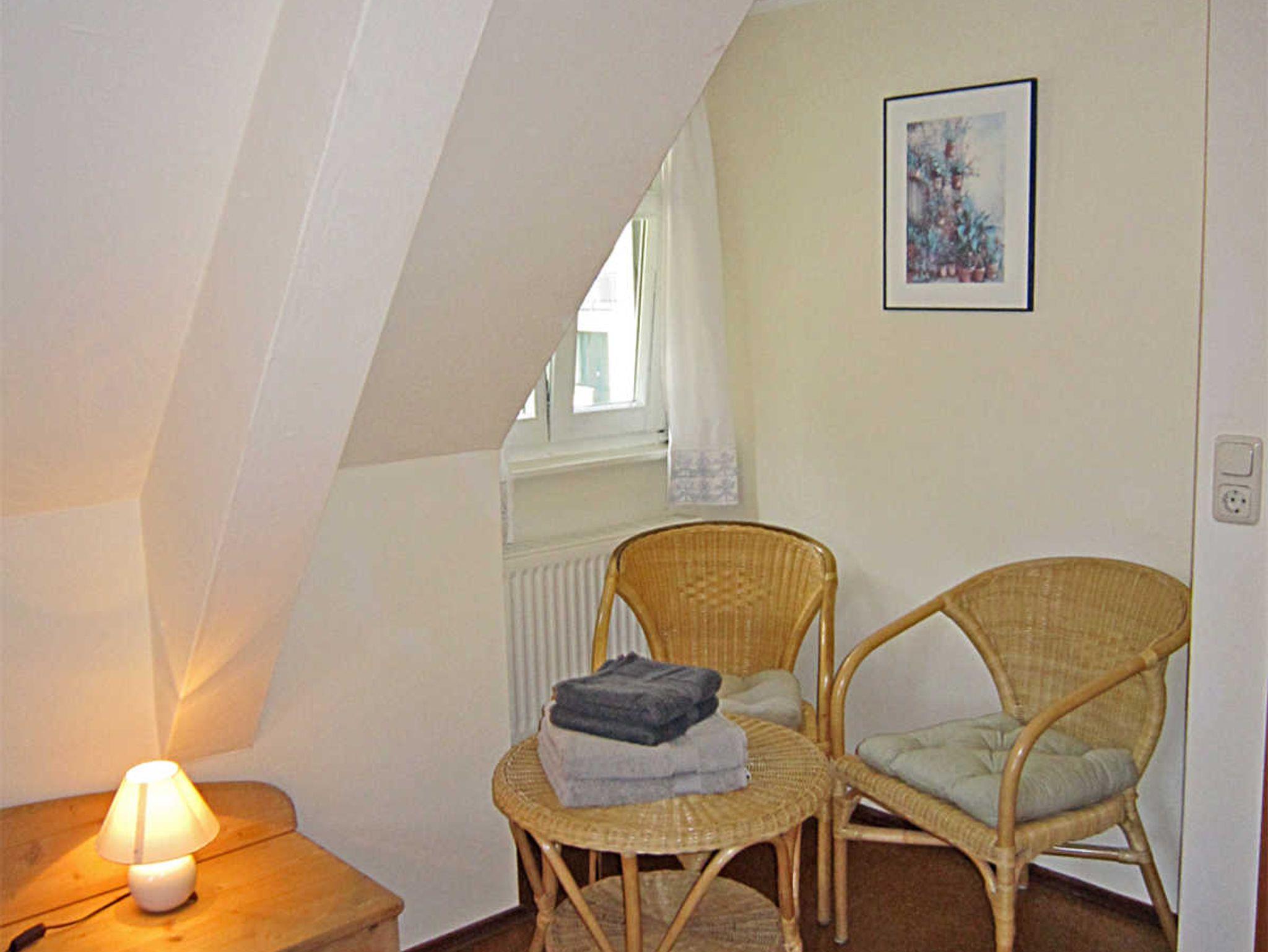Die blaue Ferienwohnung befindet sich im Dachgeschoss neben der kleinen Hausbibliothek und bietet: