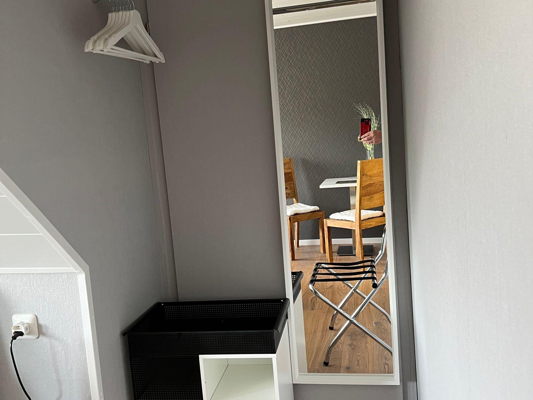 Ein Trocknungsraum mit Waschmaschine und Bügelmöglichkeit steht den Gästen im Haus zur Verfügung.