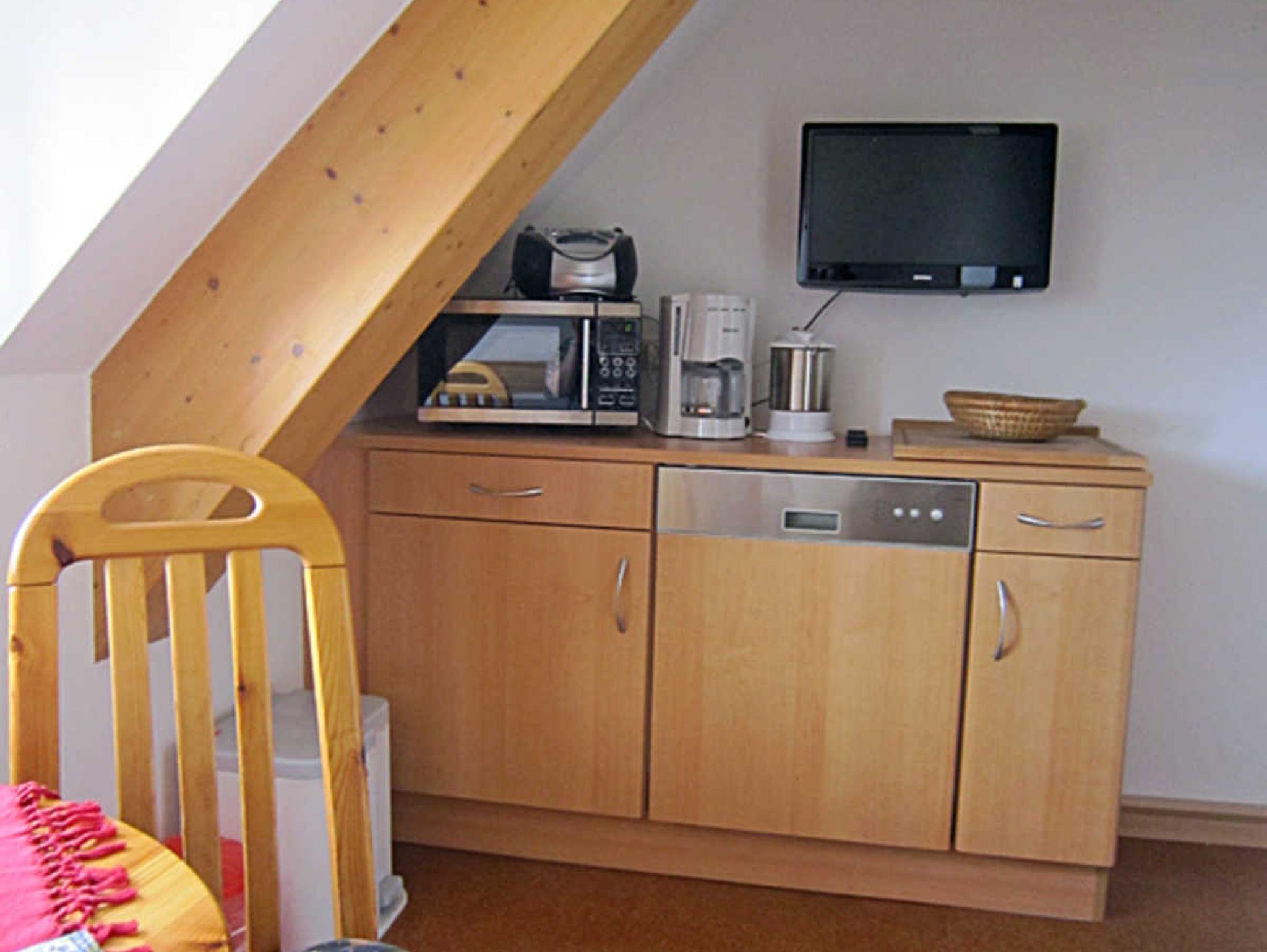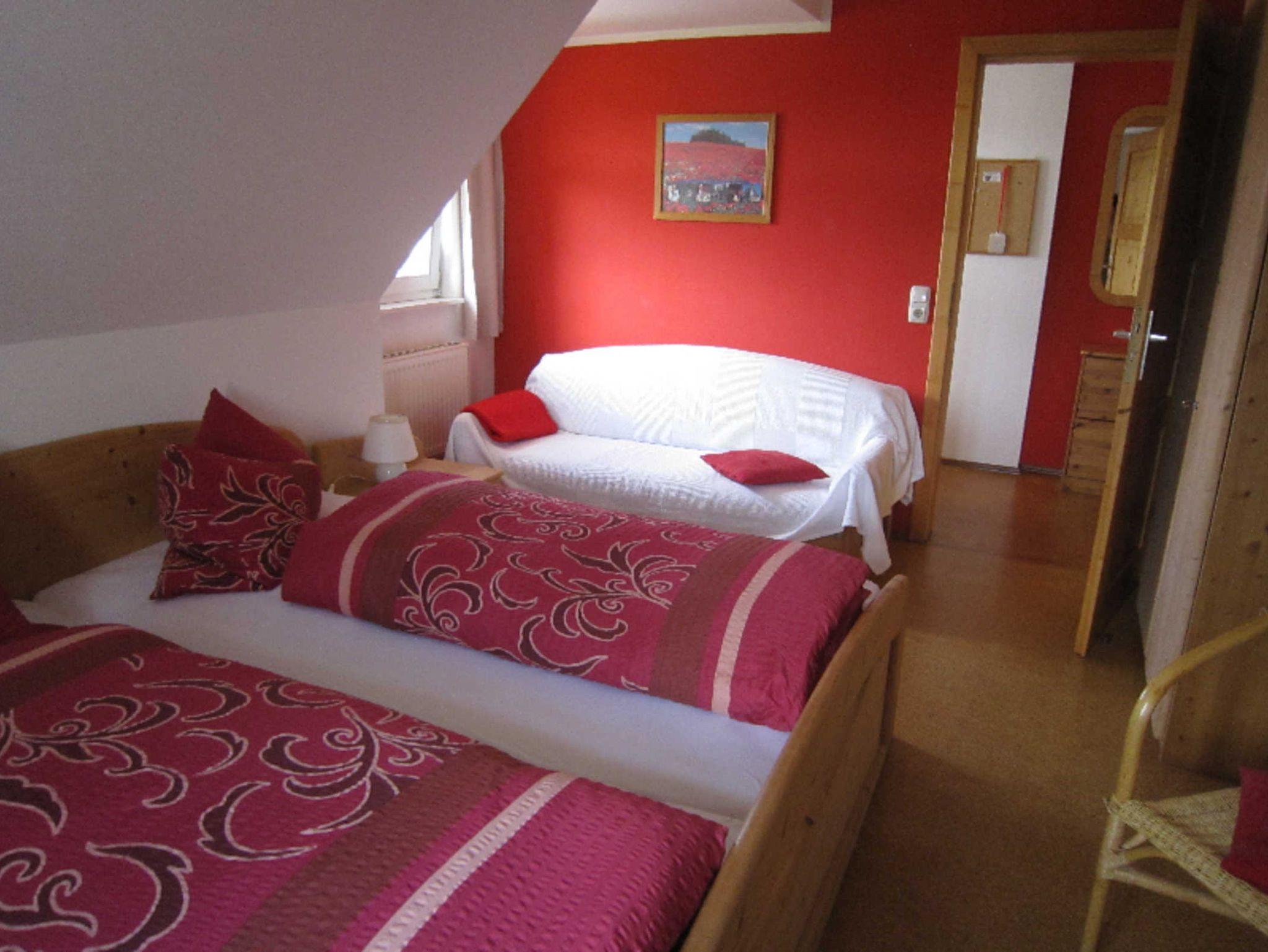 Die rote Ferienwohnung befindet sich im Dachgeschoss und bietet: