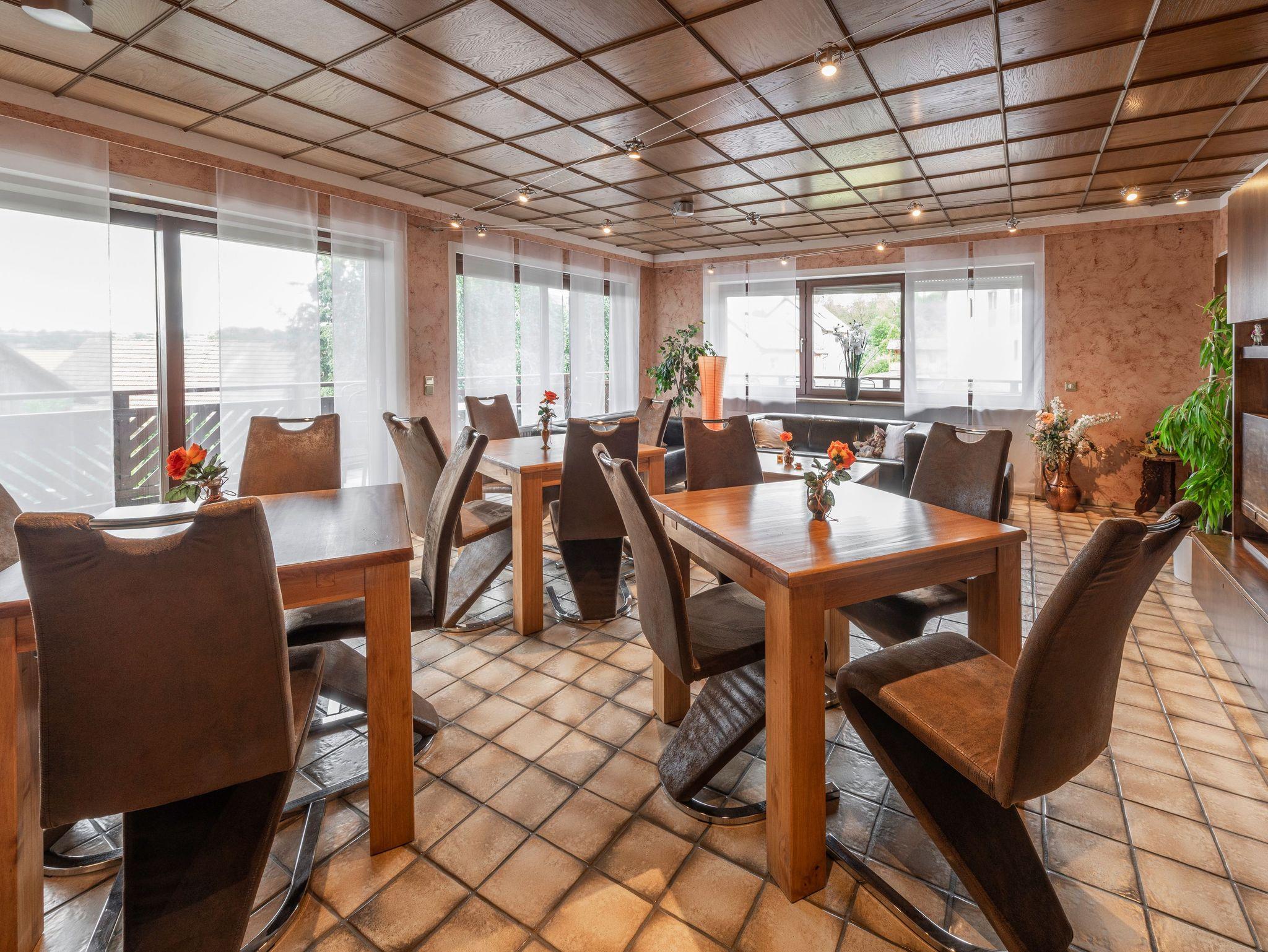 Hier befindet sich der Frühstücksraum sowie eine urige Gastwirtschaft. Wenn Sie Halbpension buchen möchten, werden sie täglich mit fränkischen Spezialitäten bekocht. In unserer hauseigenen Bäckerei bieten wir unseren Gästen und Kunden eine große Auswahl an frischen Brot- und Gebäcksorten an und für den Nachmittagskaffee steht Ihnen zusätzlich große eine Auswahl an Kleingebäck zur Verfügung. Falls Sie nicht bis zum nächsten Supermarkt fahren möchten, haben wir in unserer Bäckerei auch ein kleines Lebensmittelgeschäft integriert. Im Haus Bastian befinden sich zudem 1 Doppelzimmer, 2 Apartments und 3 Ferienwohnungen.