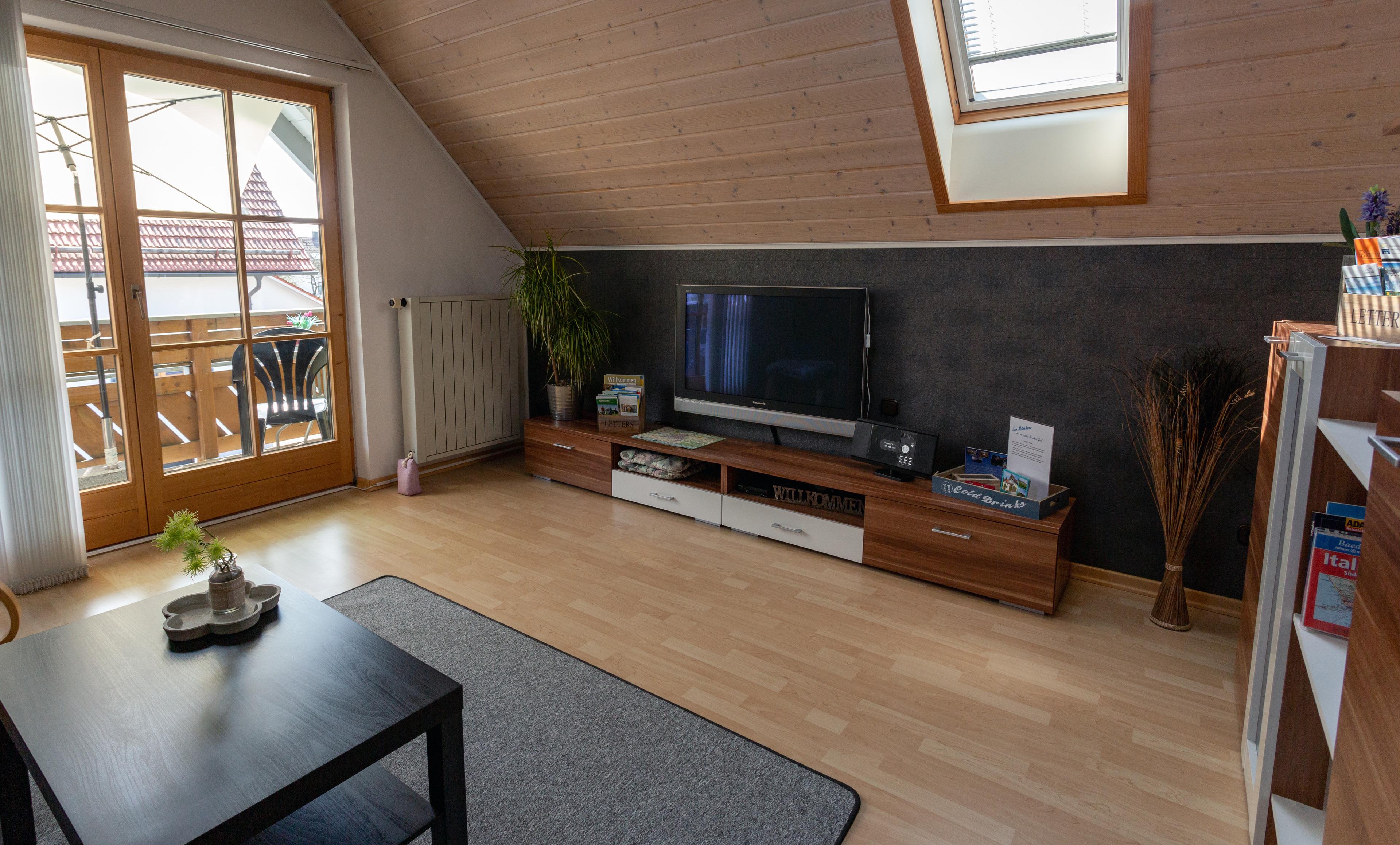 Neben dem Wohnzimmer mit Südbalkon, verfügt die Wohnung über ein Schlafzimmer mit Doppelbett und einer Küche mit Essbereich für 4 Personen, sowie einem Bad.
