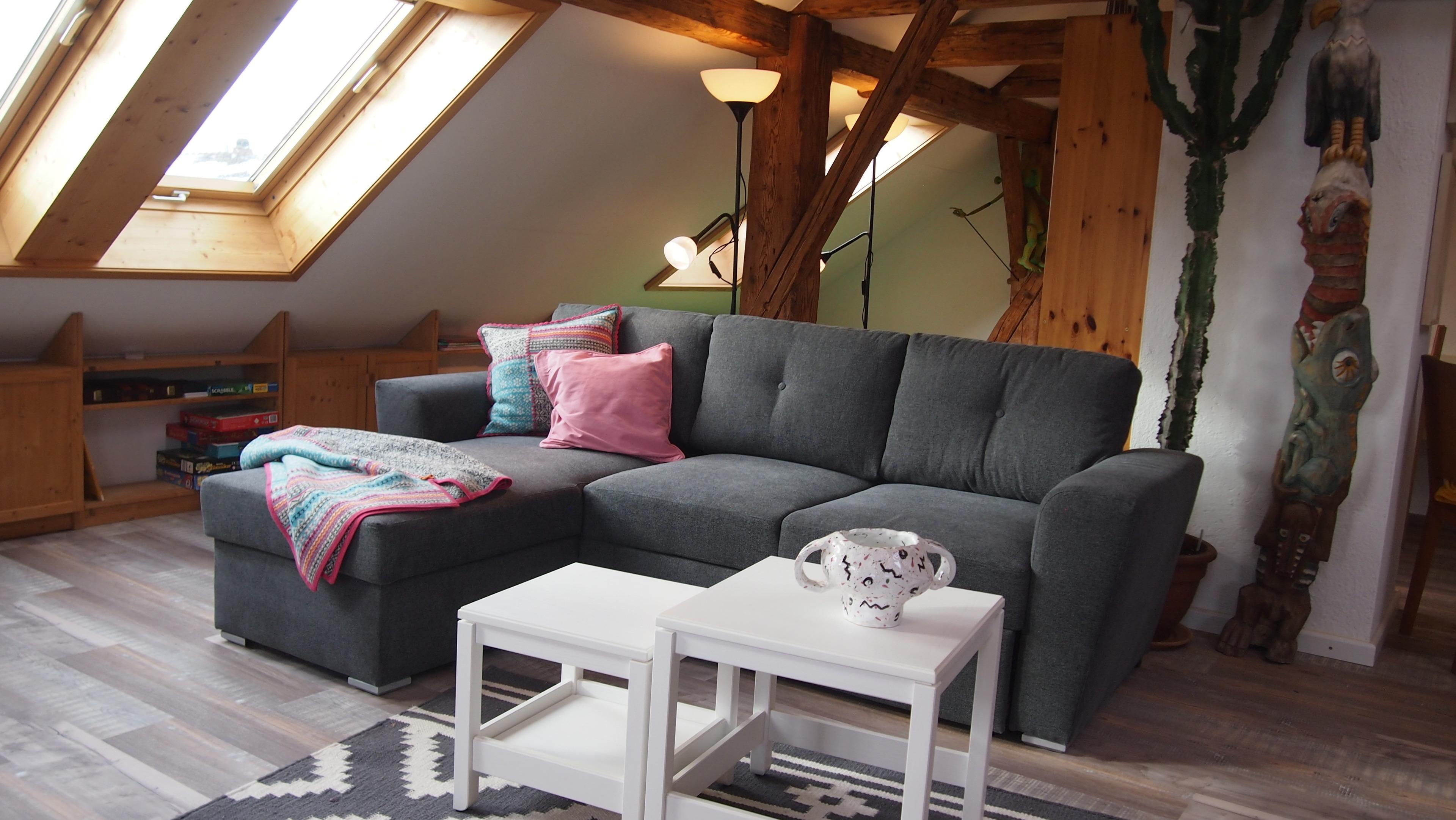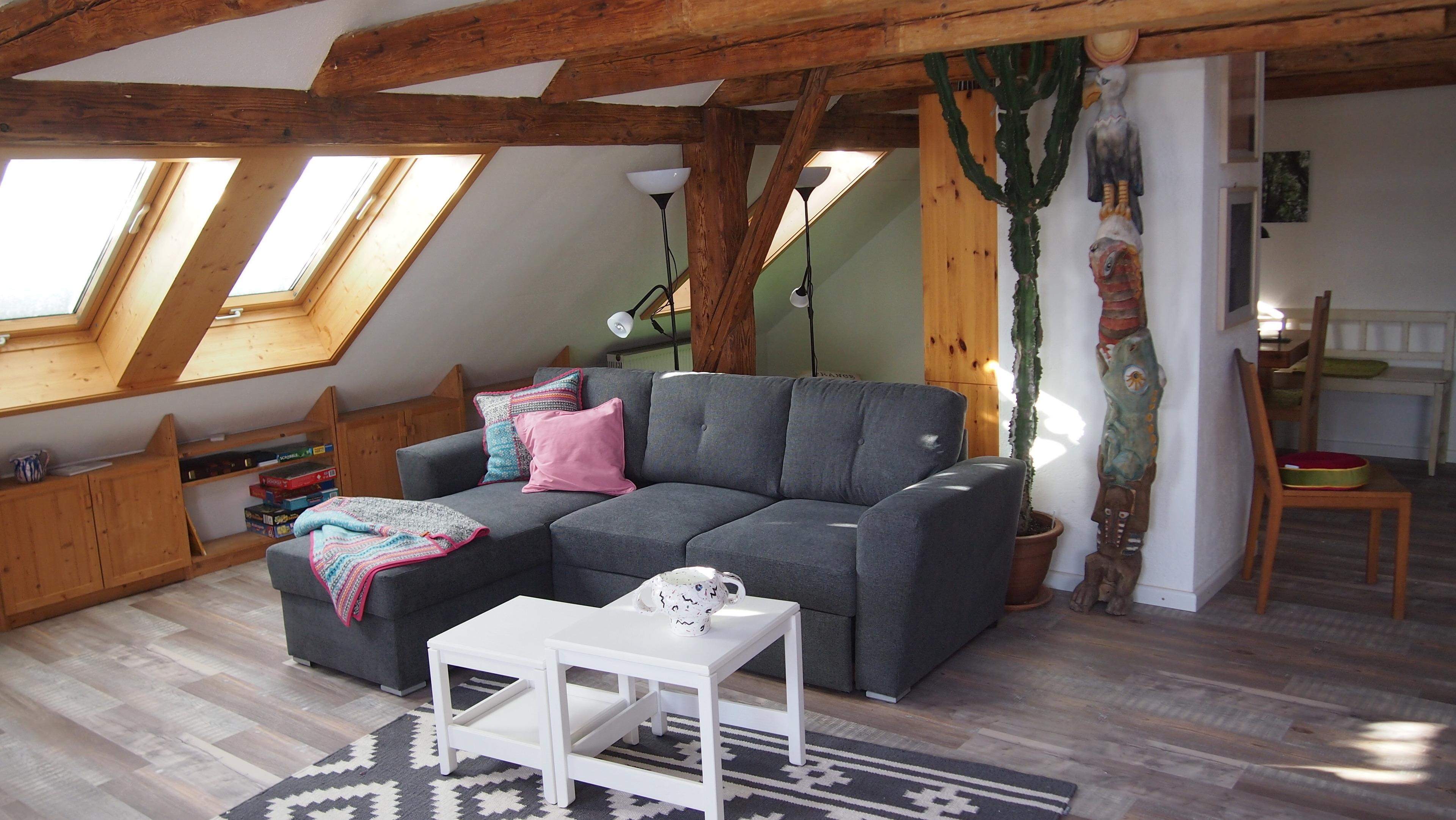Die Wohnung (ca. 120 qm) liegt im zweiten Stock eines Zweifamilienhauses mit Garten in Peiting, zentral und ruhig, und bietet Platz für sechs Personen (auf Anfrage bis neun). Unser Haus ist ca. 200 Jahre alt, von der uralten Kornkammer im Dachgeschoss zeugen alte Holzbalken und dicke Mauern. Frisch renoviert und geschmackvoll eingerichtet findet hier jede/r seinen Platz zum Durchatmen und Entspannen. Unsere Ferienwohnung ist ideal für Familien oder eine Gruppe von Freunden!