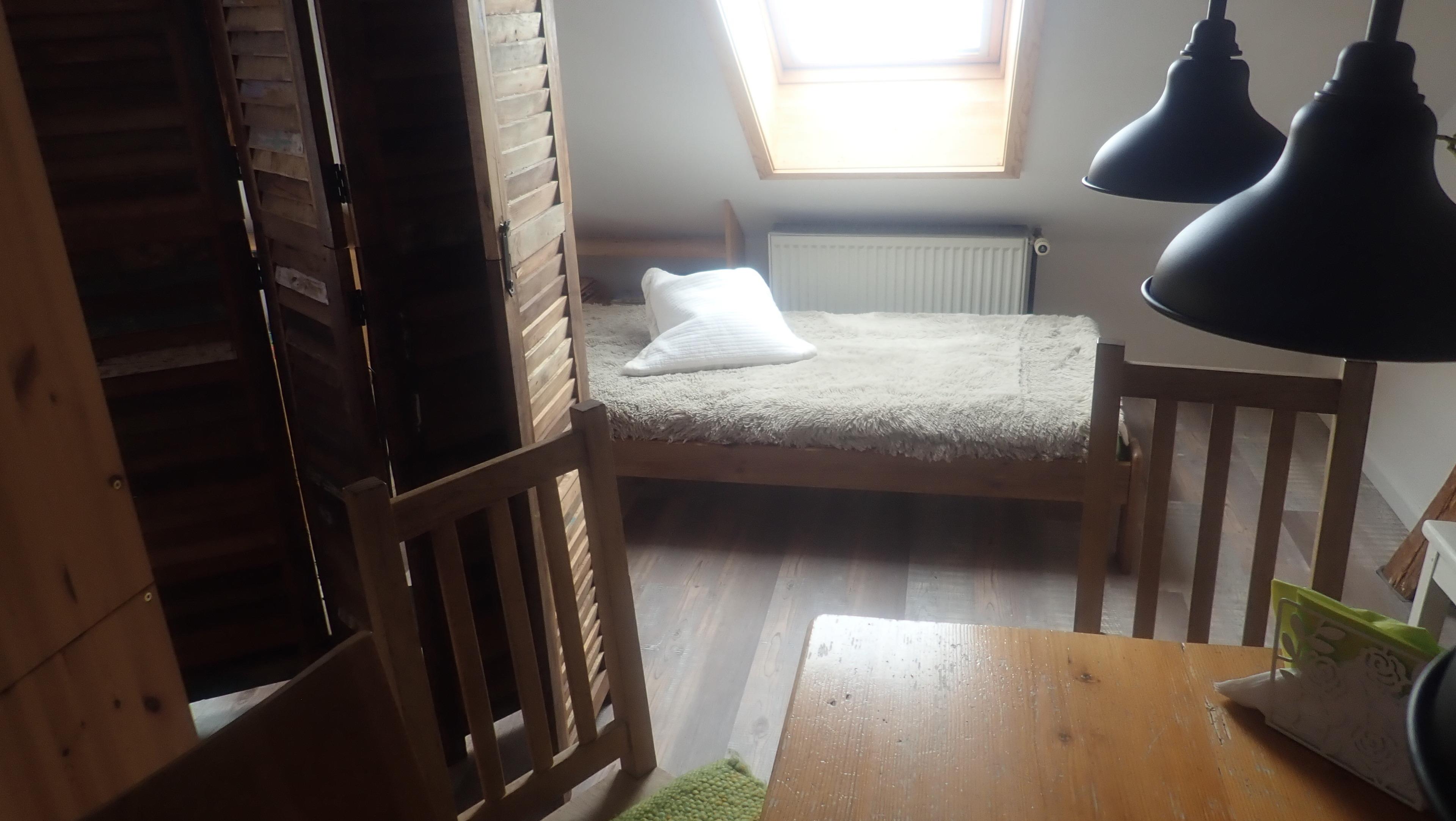 Treppenleiter, zwei neue Futons, Lampe, Sicherheitsnetz - schlafen wie im Zelt! (nur für Kinder über sechs oder sportliche Erwachsene)