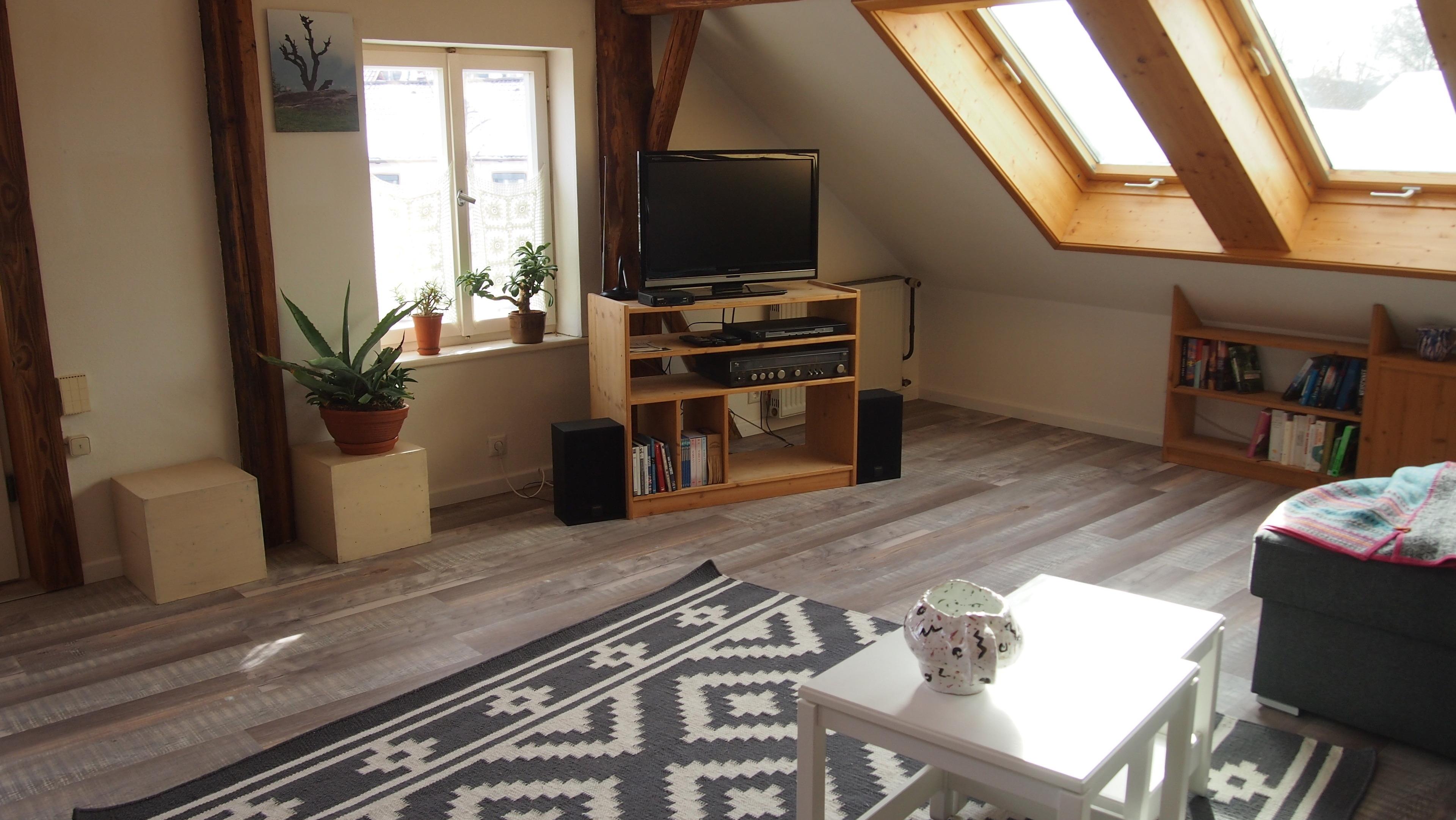 TV, CD Player, Radio, CDs, DVDs und Spiele, viele neue! und gute Bücher, Lesesessel, große (Schlaf-) Coach (1-2 Personen), Kuschelecke (zusätzliche Schlafmöglichkeit), in einer Nische französisches Bett für 1-2 Personen (1,40, auch zum Relaxen tagsüber), großer Esstisch mit Bank und Stühlen und eine Hängematte!
