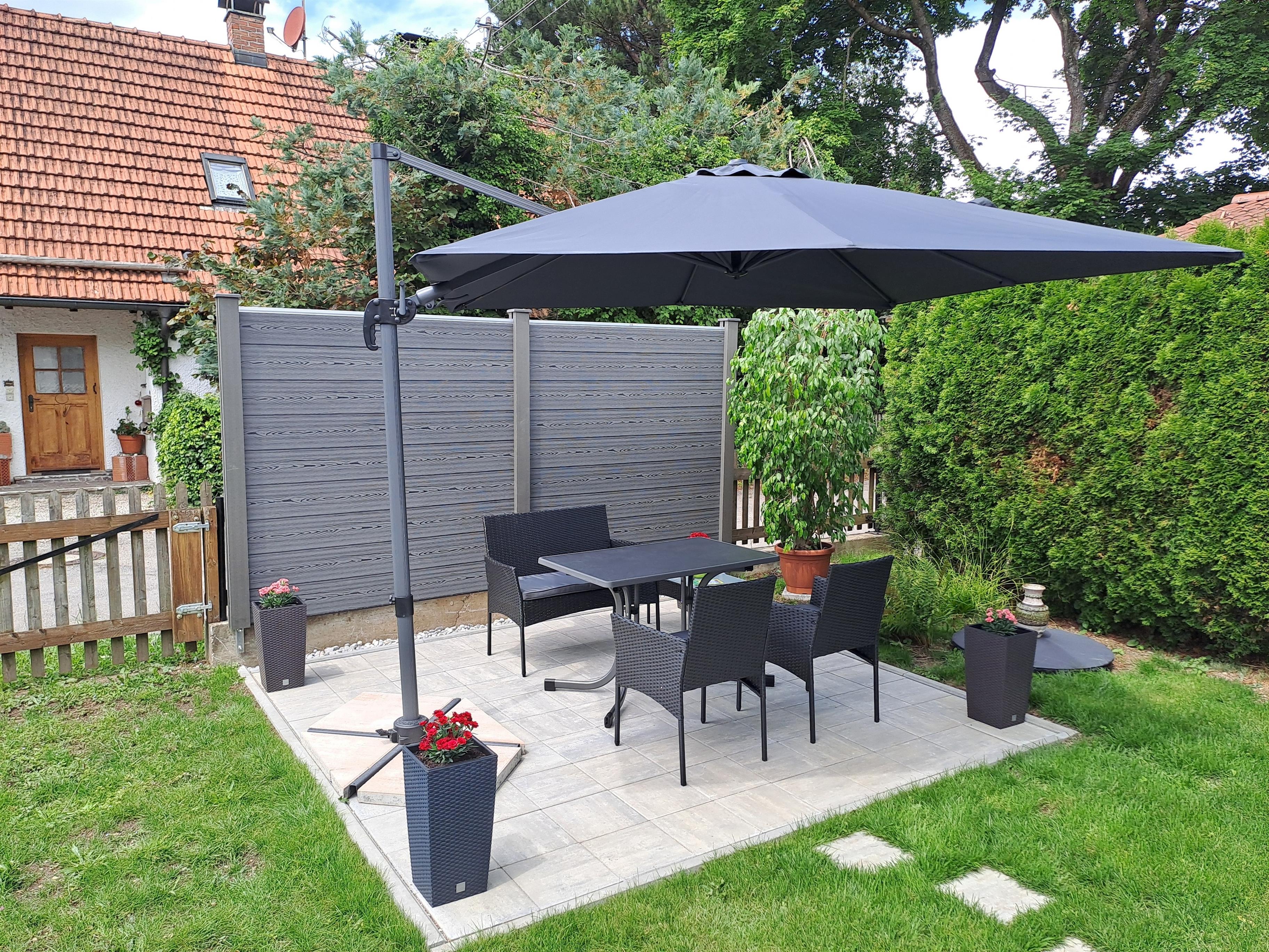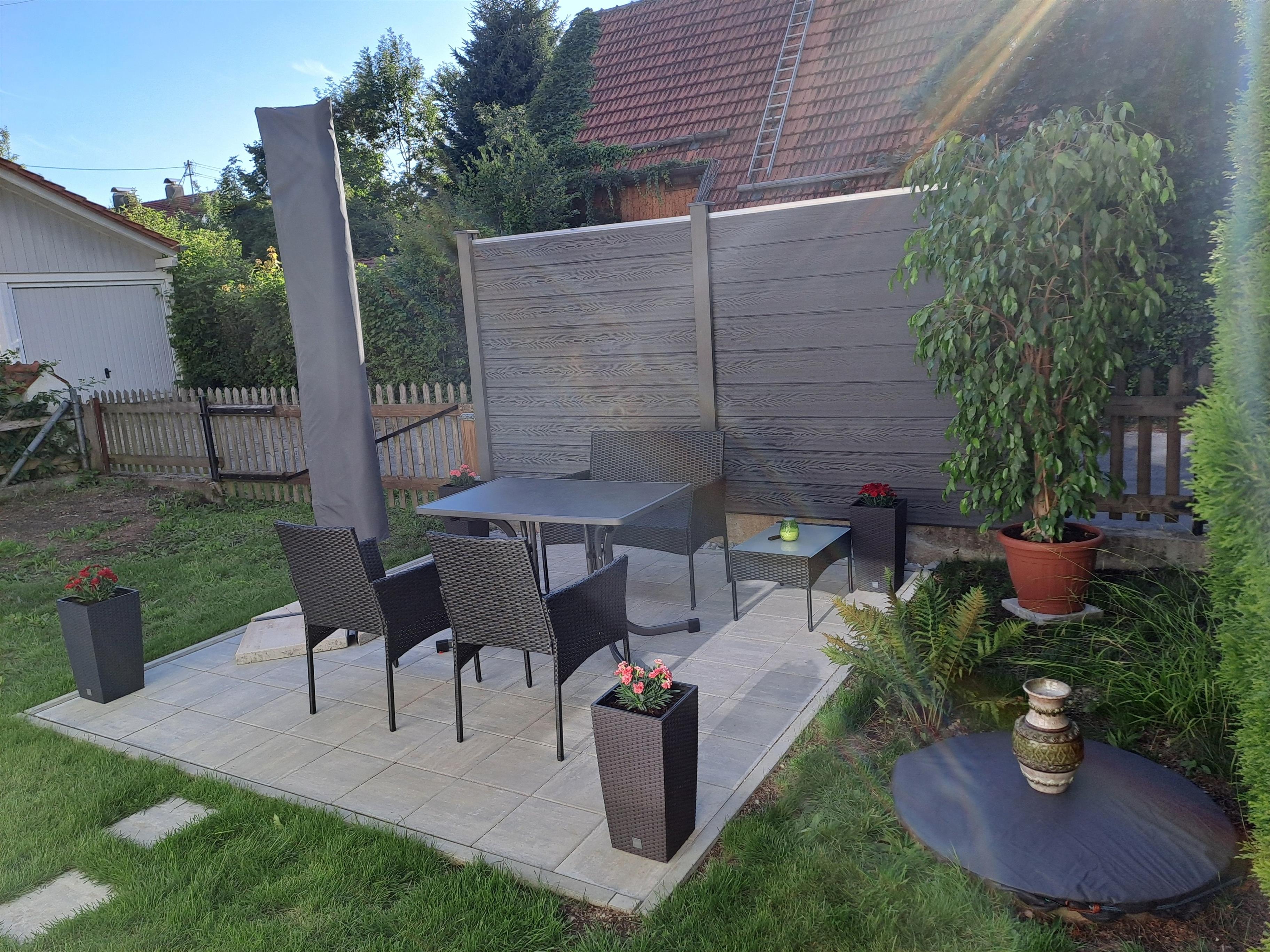 Genießen Sie ungestört Ihre Privatsphäre in der Ferienwohnung im 1. Stock unseres Hauses. Zugang über einen separaten Eingang. Zur Wohnung gehört ab Juni 2025 ein eigener Teil im Garten mit Terrasse, Sichtschutz, gemütlicher Sitzgruppe und großem Sonnenschirm. Die behagliche 3-Zimmer-Wohnung bietet eine große Wohnküche mit stabilem Keramiktisch und vier bequemen Drehstühlen. Die Küche ist mit allen nötigen Küchengeräten ausgestattet. Das offene Wohnzimmer mit Flachbild-TV und 2 Sofas lädt zum Relaxen ein. Sie werden sich dort sofort wohlfühlen. Alle Fußböden bestehen aus Echtholz-Eichenparkett. Beide Schlafzimmer sind mit großen, bequemen Doppelbetten ausgestattet und verdunkelbar. Das WC ist separat von der Dusche untergebracht.