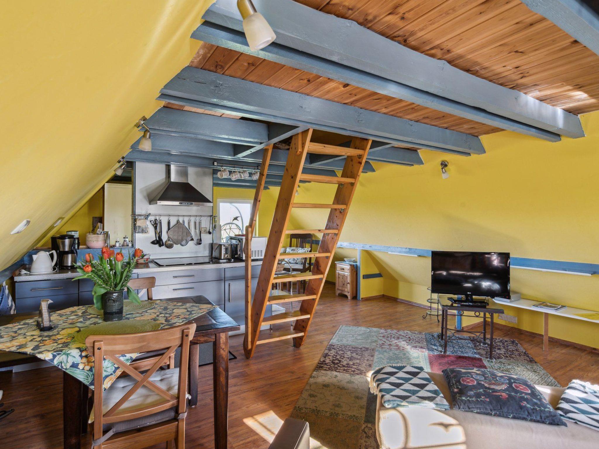 The outdoor area of the holiday home is equally inviting. The terrace offers a wonderful place to enjoy the tranquillity of the surroundings. The provider lives on the same property, but is not in the way of your private moments, so you can admire the beauty of the garden undisturbed. A washing machine and tumble dryer for communal use are available in the building to make your stay even more enjoyable.