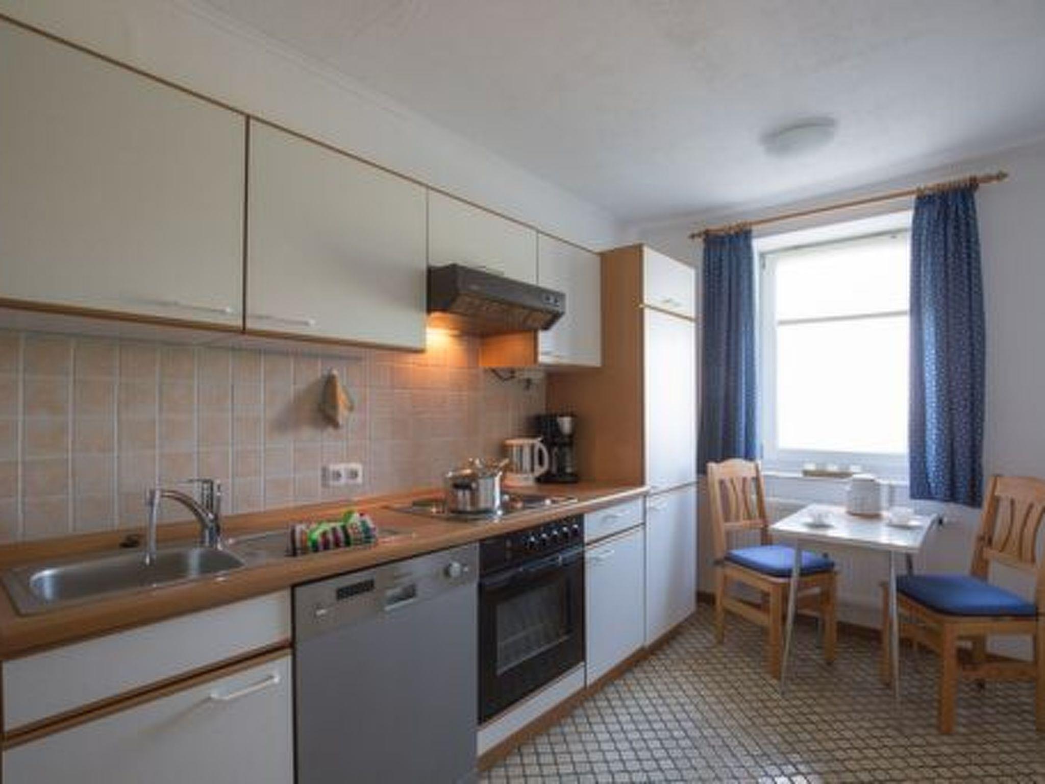 The interior of the flat welcomes you with an endearing blend of tradition and modernity. A renovated bathroom, two cosy bedrooms and a lovingly furnished living room with a historic wooden ceiling invite you to linger. The kitchen leaves nothing to be desired with a fridge, freezer, cooker with oven, dishwasher, plenty of crockery, glasses, cutlery and microwave, making self-catering a pleasure.