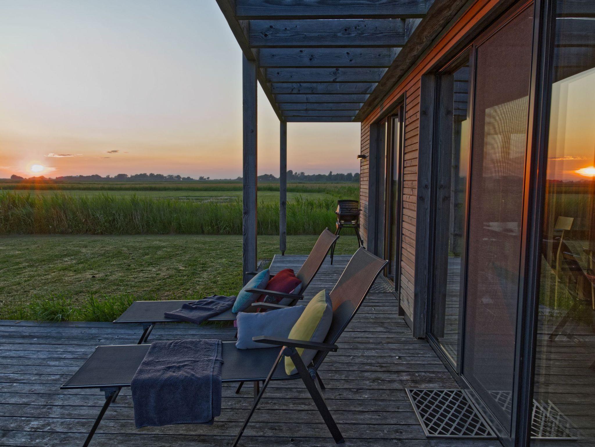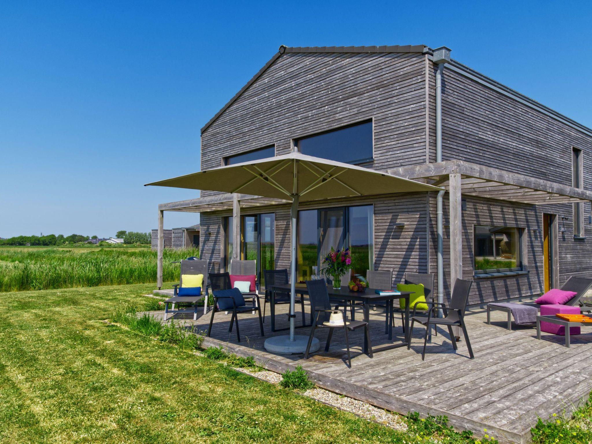 Ihre Mahlzeiten können Sie auch ganz in Ruhe auf der großen Terrassenfläche einnehmen. Ein Terrassentisch und 8 Stühle sind dafür vorhanden. Drei Liegen laden zum ausgiebigen Sonnenbaden ein. Der Garten bietet viel Erholungs- und Spielfläche. Auch in den kühleren Monaten ergänzen sich Natur und Haus perfekt. Machen Sie es sich nach ausgiebigen Deichwanderungen in frischer Meeresluft einfach in der Sauna oder auf dem Sofa gemütlich oder geben Sie sich dem hin, was hier am besten funktioniert: dem gepflegten Nichtstun!