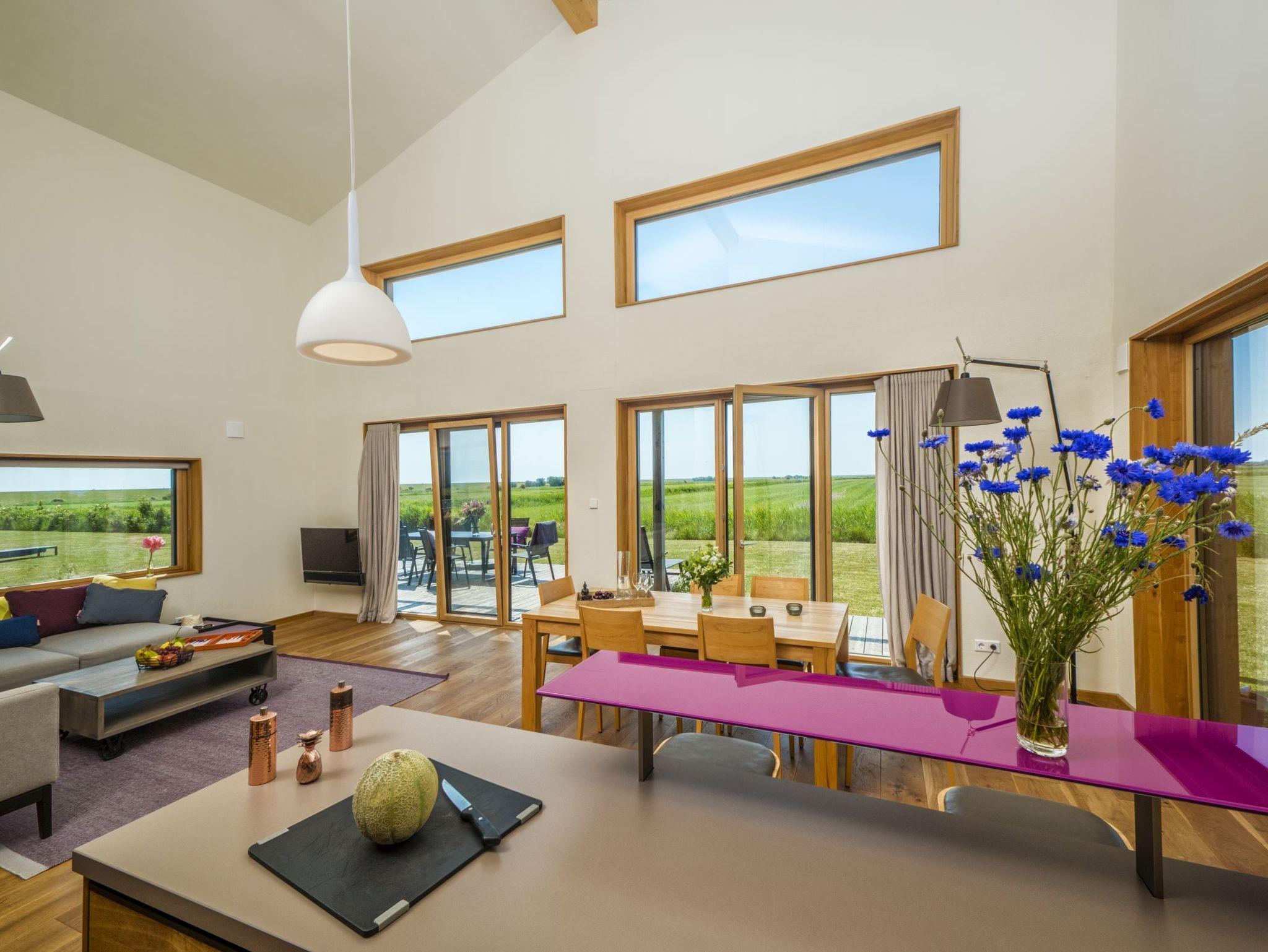 Das Haus besteht fast ausschließlich aus Naturmaterialien wie Holz oder Schafswolle und kommt somit weitestgehend ohne chemisch hergestellte Materialien aus. Zudem verfügt es über eine spezielle Staubsauganlage, die allergene Stoffe aus den Innenräumen direkt nach außen transportiert. Normale Staubsauger würden diese mit der Abluft wieder im Raum verteilen. Auch die Möbel wurden zusammen mit Interieur-Designern eigens für das Resort entwickelt und sind frei von Weichmachern und Lösungsmitteln. Die dadurch sehr gute Raumluftqualität sorgt für ein besonderes Wohlgefühl.