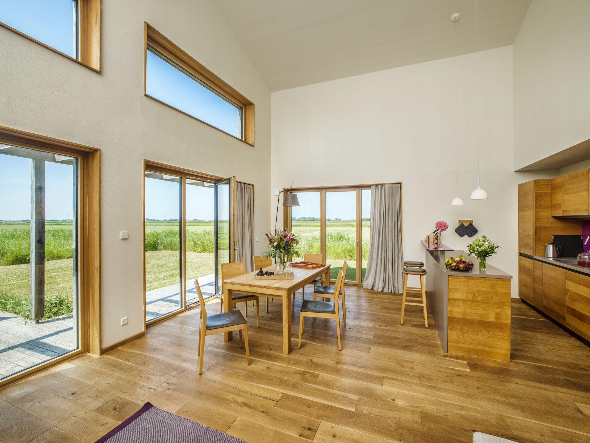 Die drei Schlafzimmer verfügen jeweils über ein Doppelbett (160x200) und einen großen Einbauschrank. Bei Bedarf kann ein Zustellbett (80x200, gegen Gebühr) ergänzt werden. Zwei der Schlafräume sind mit einem 32“-TV ausgestattet. Der majestätische Wohnraum (39 m²) mit einer Firsthöhe von 5,80 m und Galerie im Obergeschoss verfügt über einen Essbereich mit offener Küche und Tresen sowie einer Sofalandschaft mit 40“-TV und SONOS Soundbar. Die Soundanlage kann über Ihr Smartphone mittels SONOS-App gesteuert werden. Ergänzend zum Duschbad im Erdgeschoss verfügt das Obergeschoss über ein großzügiges Vollbad (18 m²) mit freistehender Badewanne, großer Sauna und Balkon. Die Loungemöbel der Galerie laden zum Lesen eines guten Buches ein oder man schaut einfach nur fasziniert durch die großen Panoramafenster in die Weite Pellworms. Alle Küchengeräte wie Induktionsherd, Spülmaschine und Kühlschrank mit 4-Sterne-Gefrierfach sowie Waschmaschine und Trockner stammen aus dem Hause Miele. Dank eines hochmodernen Glasfaseranschlusses ist eine leistungsstarke Internetverbindung (250 MBit) vorhanden (z.B. für Streaming). Das WLAN im Haus kann auf Wunsch deaktiviert werden.