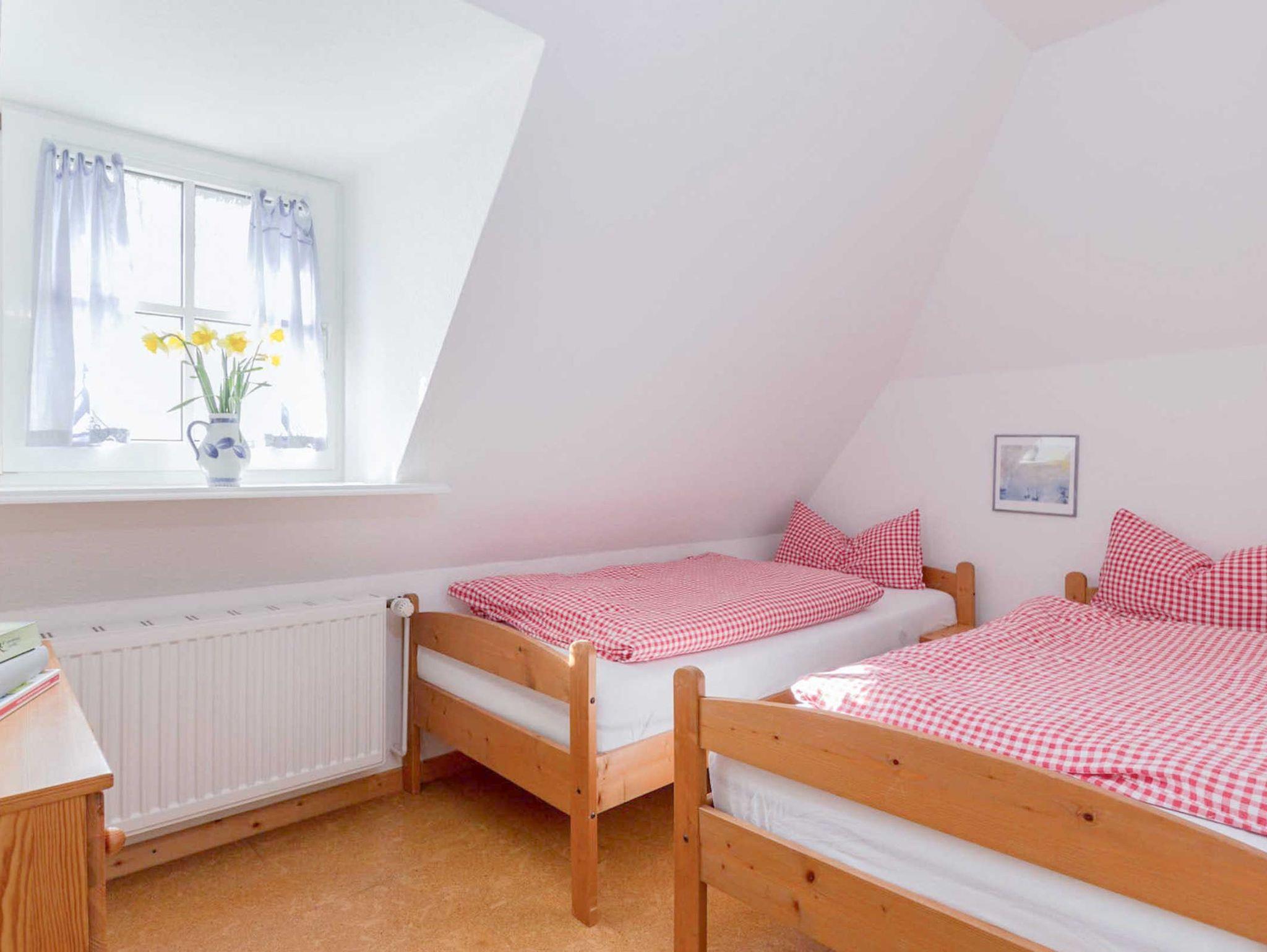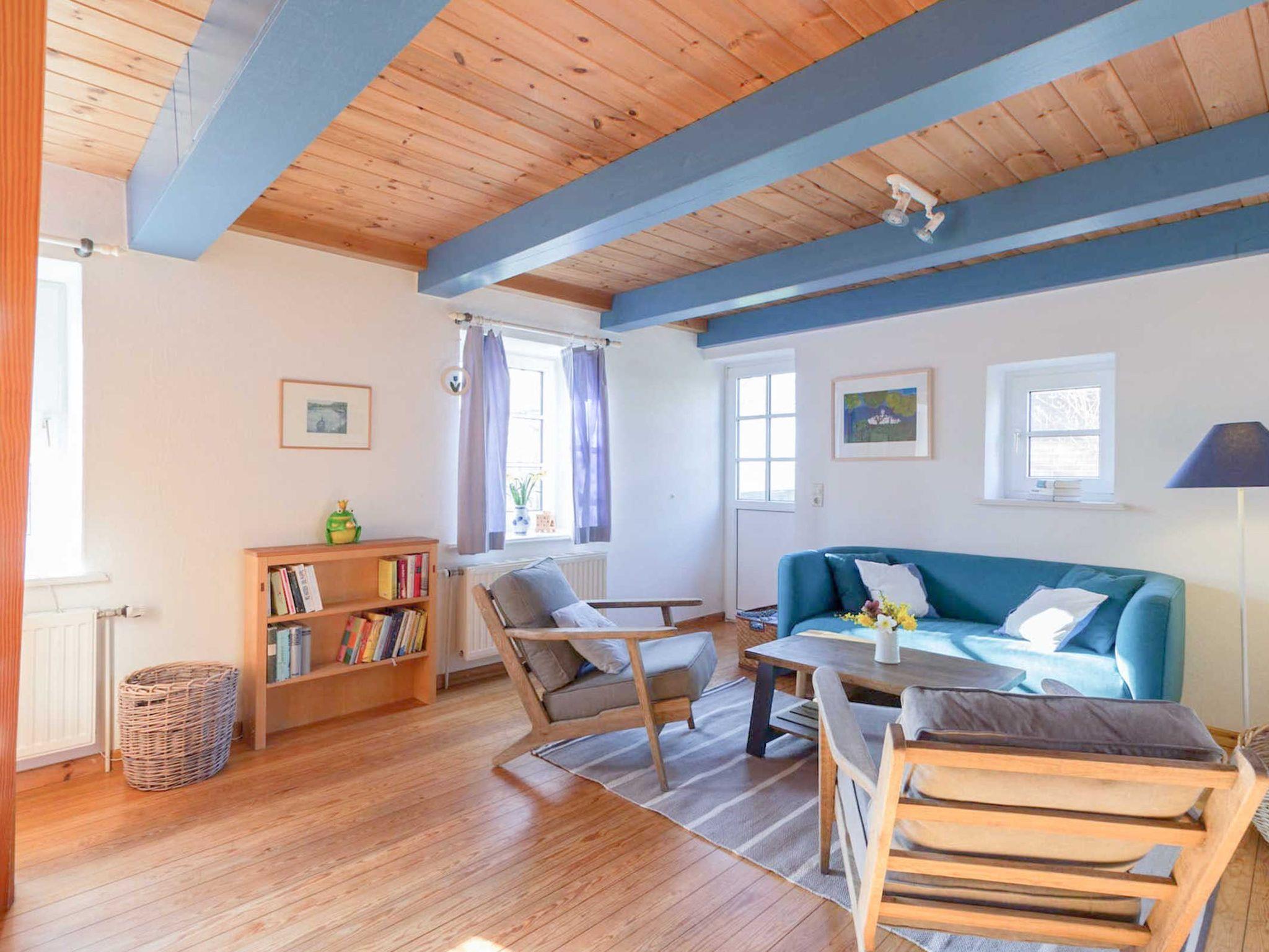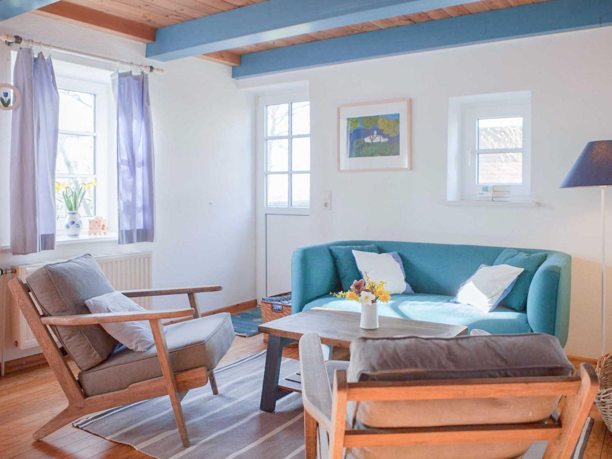 In dem gemütlichen Reetdachhaus finden Sie zwei liebevoll eingerichtete Ferienwohnungen. Jede Wohnung ist ein in sich abgeschlossenes kleines Häuschen mit Platz für vier Personen. Im Erdgeschoss können Sie in der Küche zusammen kochen, am großen Tisch gemeinsam essen oder auf dem Sofa entspannen. Unter den Schrägen des Reetdachs laden zwei Schlafzimmer zum Ausschlafen ein.