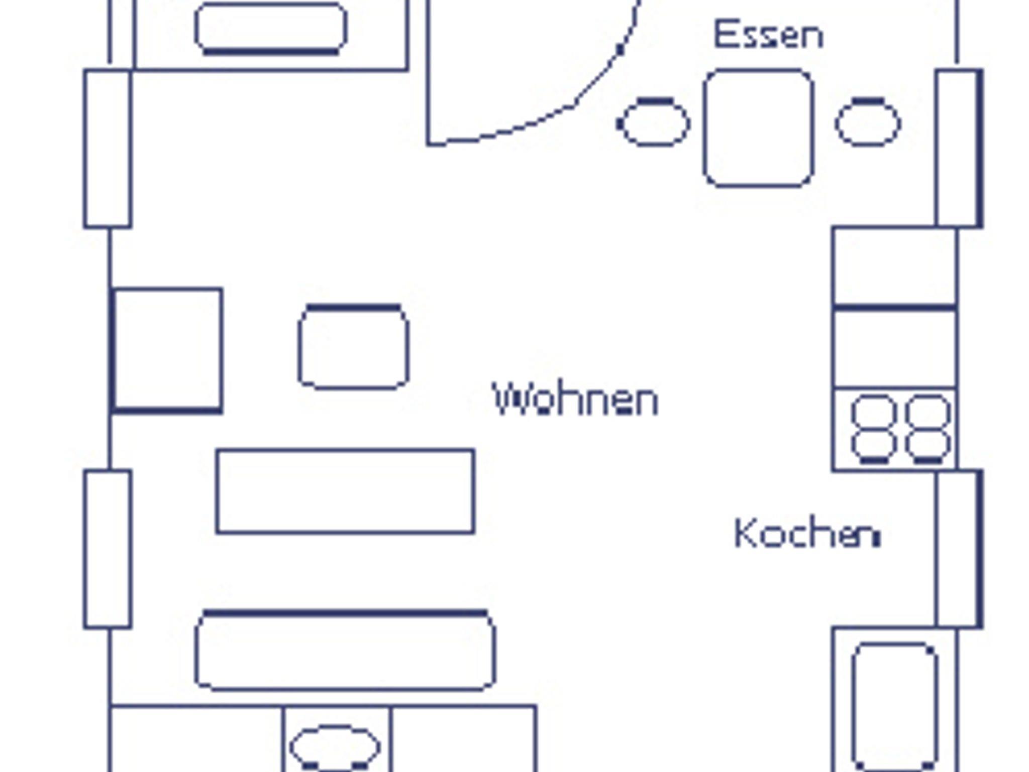 • 1 Wohnzimmer mit Schlafcouch und Küchenzeile