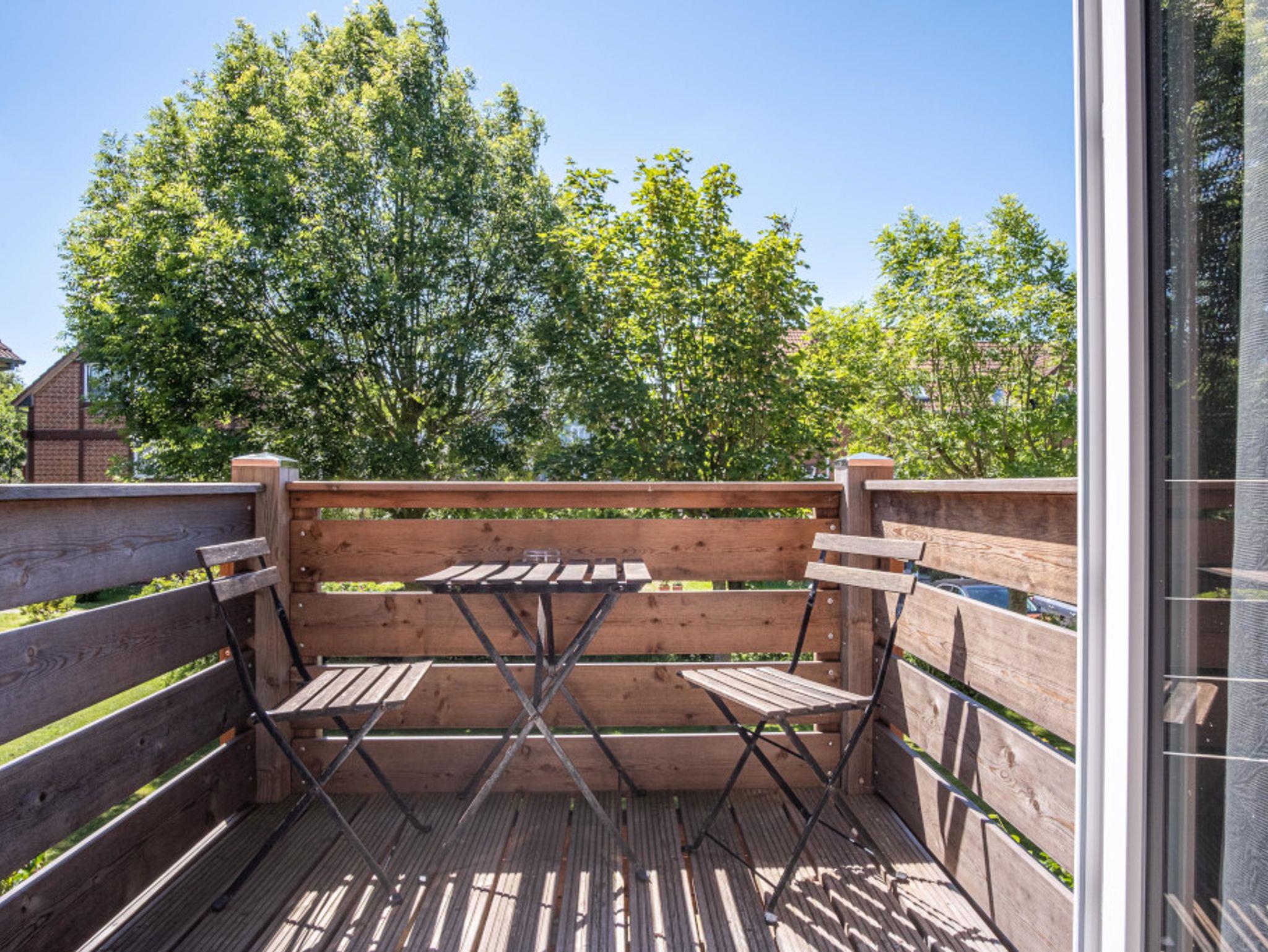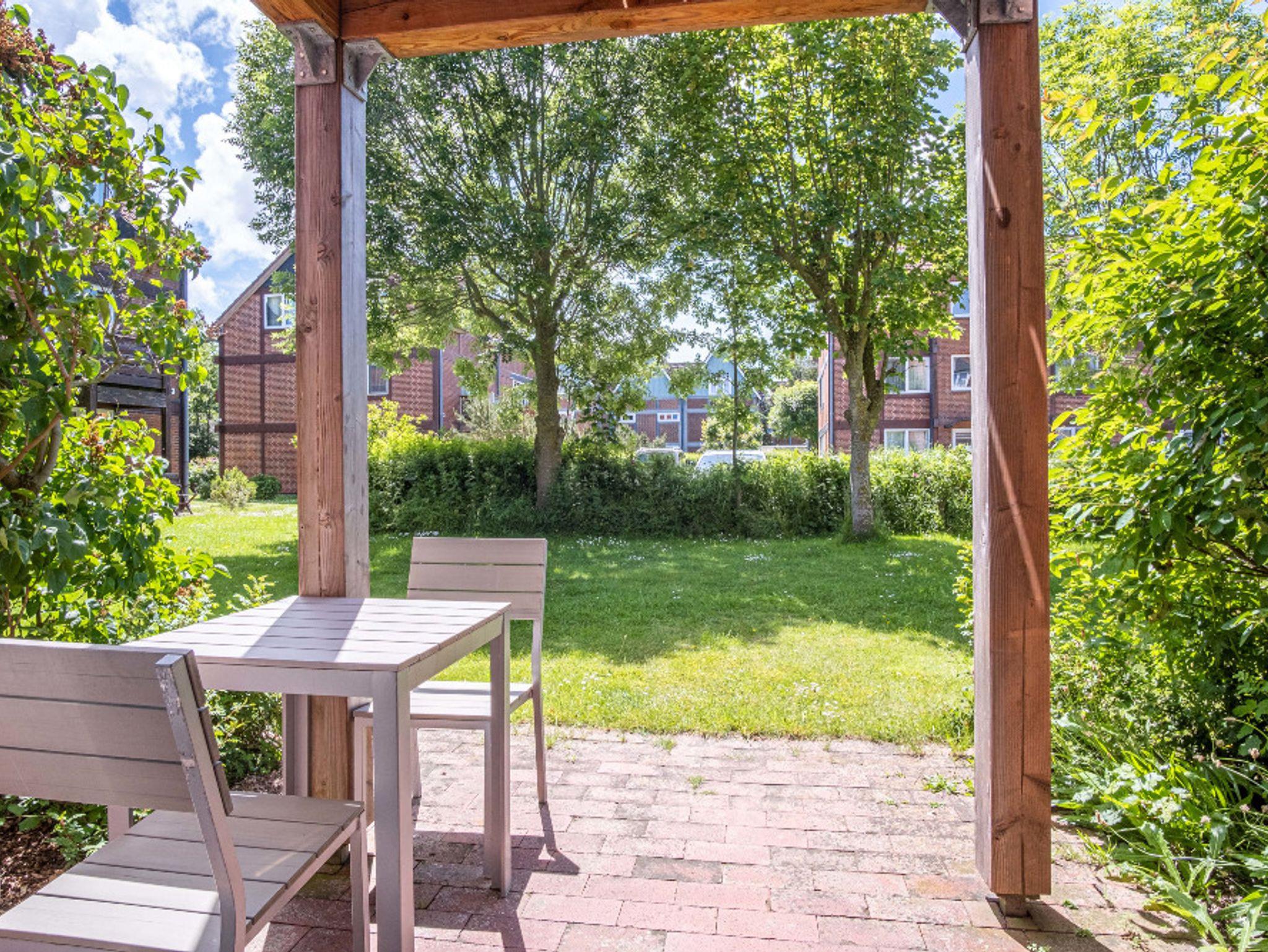 Eine weitläufige Grünanlage rahmt die Häuser im Fachwerkstil ein und schafft eine Oase der Ruhe. Liegewiesen und Grünanlagen laden zum Entspannen und Verweilen ein.
