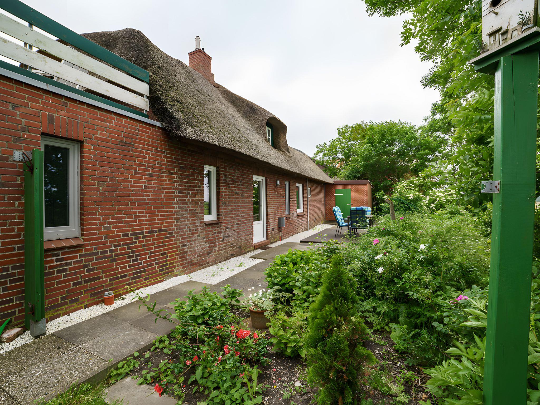 Das Ferienhaus Pellwormer Rosen Hus ist etwa 90 m² groß und bietet Platz für bis zu 4 Personen. Kinder sind ab 10 Jahren willkommen, da eine schmale Treppe in das Obergeschoss führt.