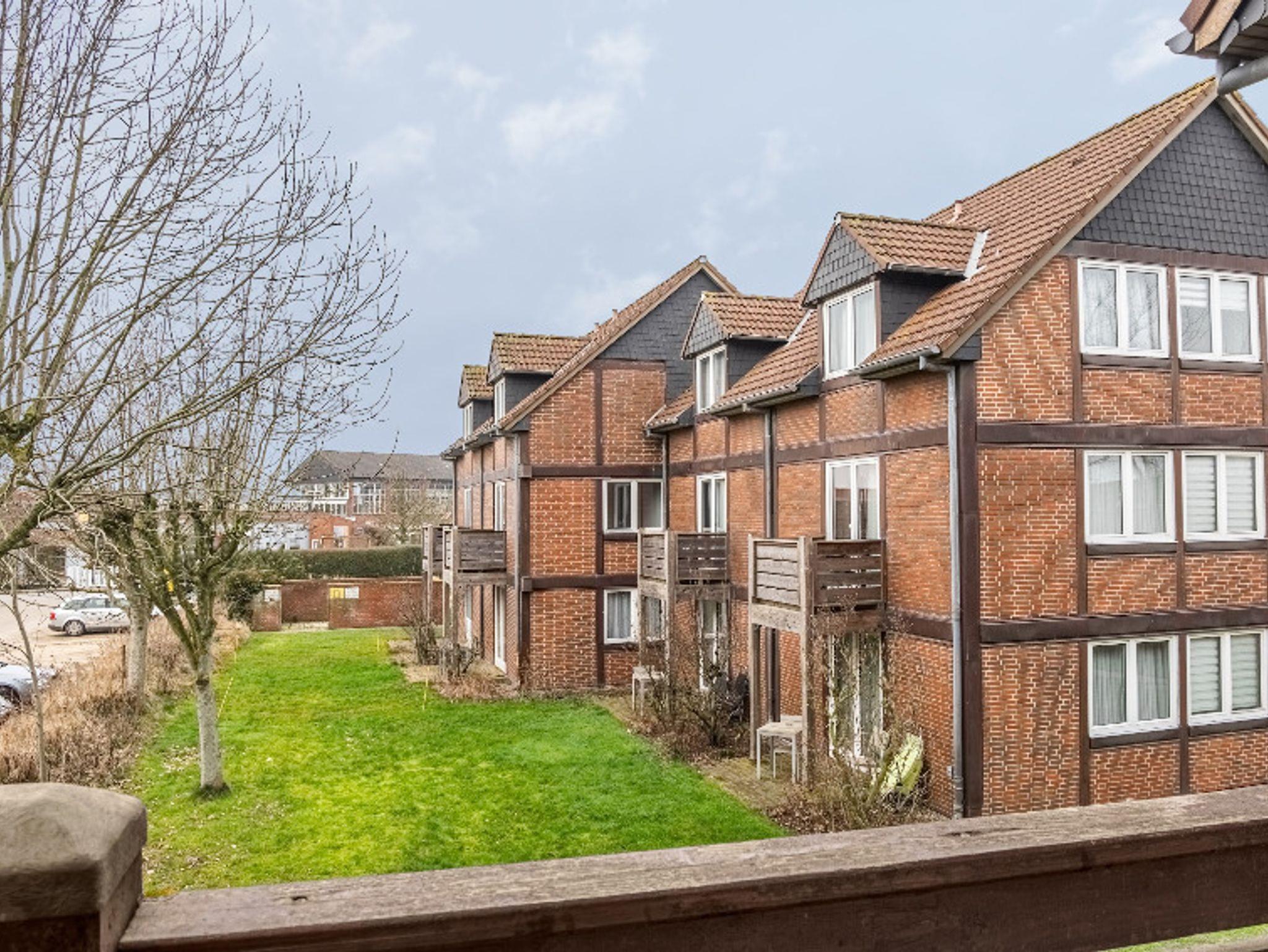 Eine weitläufige Grünanlage rahmt die Häuser im Fachwerkstil ein und schafft eine Oase der Ruhe. Liegewiesen und Grünanlagen laden zum Entspannen und Verweilen ein.