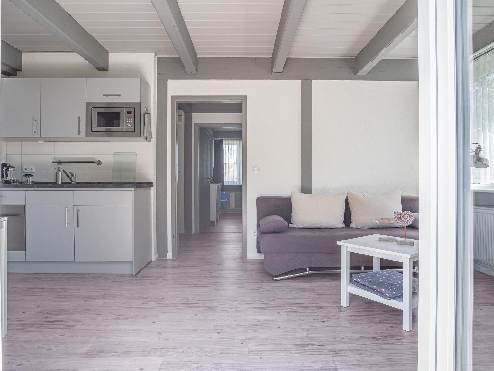 Auf 40 Quadratmetern bietet Dir Deine Unterkunft alle Annehmlichkeiten, die Du für den perfekten Urlaub benötigst: eine voll ausgestattete Küchenzeile mit Geschirrspüler und Kaffeemaschine - eine Mikrowelle, Toaster, Kühlschrank und ein Wasserkocher sind ebenfalls vorhanden.
