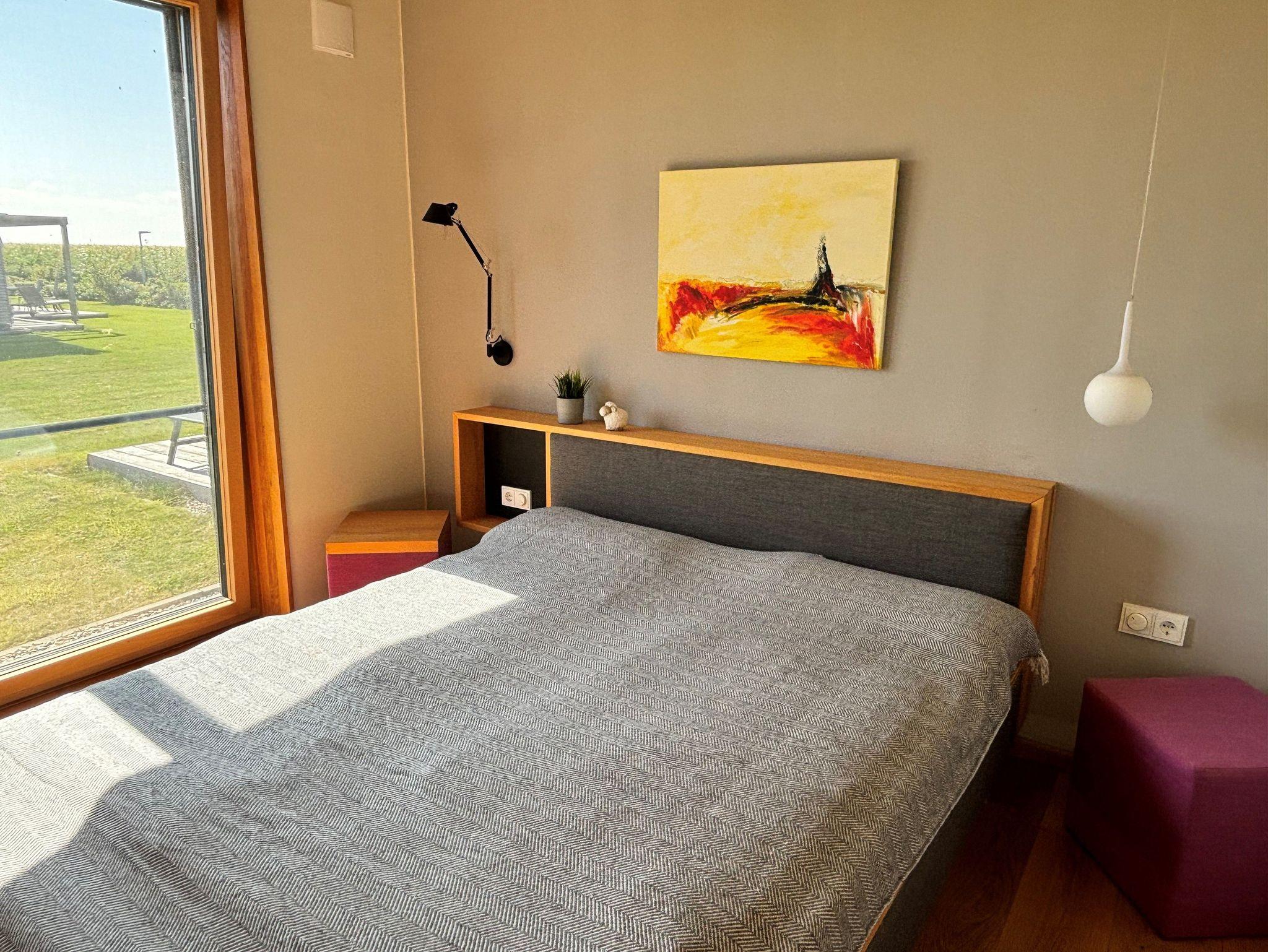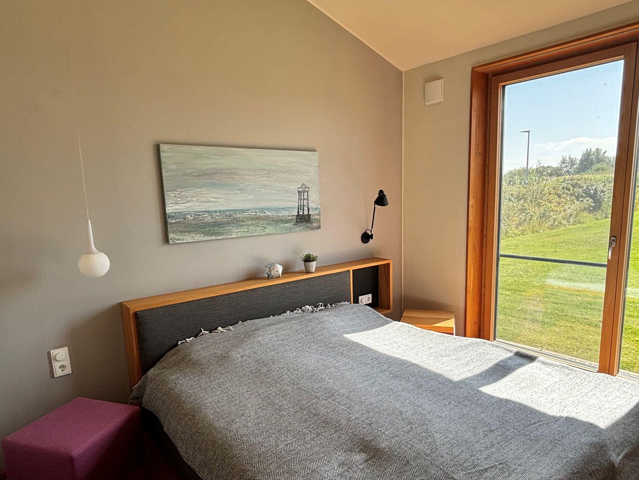 Der großzügige Wohnraum (40 m²) mit Essbereich, offener Küche und Tresen verfügt über einen 40“-TV mit SONOS Soundbar. Die Soundanlage kann über Ihr Smartphone mittels SONOS-App gesteuert werden. Die zwei Schlafzimmer verfügen jeweils über ein Doppelbett (160x200) und einen großen Einbauschrank. Bei Bedarf kann ein Zustellbett (80x200, gegen Gebühr) ergänzt werden. Ein Schlafraum ist mit einem 32“-TV ausgestattet. Alle Küchengeräte wie Induktionsherd, Spülmaschine und Kühlschrank mit 4-Sterne-Gefrierfach sowie Waschmaschine und Trockner stammen aus dem Hause Miele. Dank eines hochmodernen Glasfaseranschlusses (250 MBit) ist eine leistungsstarke Internetverbindung vorhanden (z.B. für Streaming). Das WLAN im Haus kann auf Wunsch deaktiviert werden.