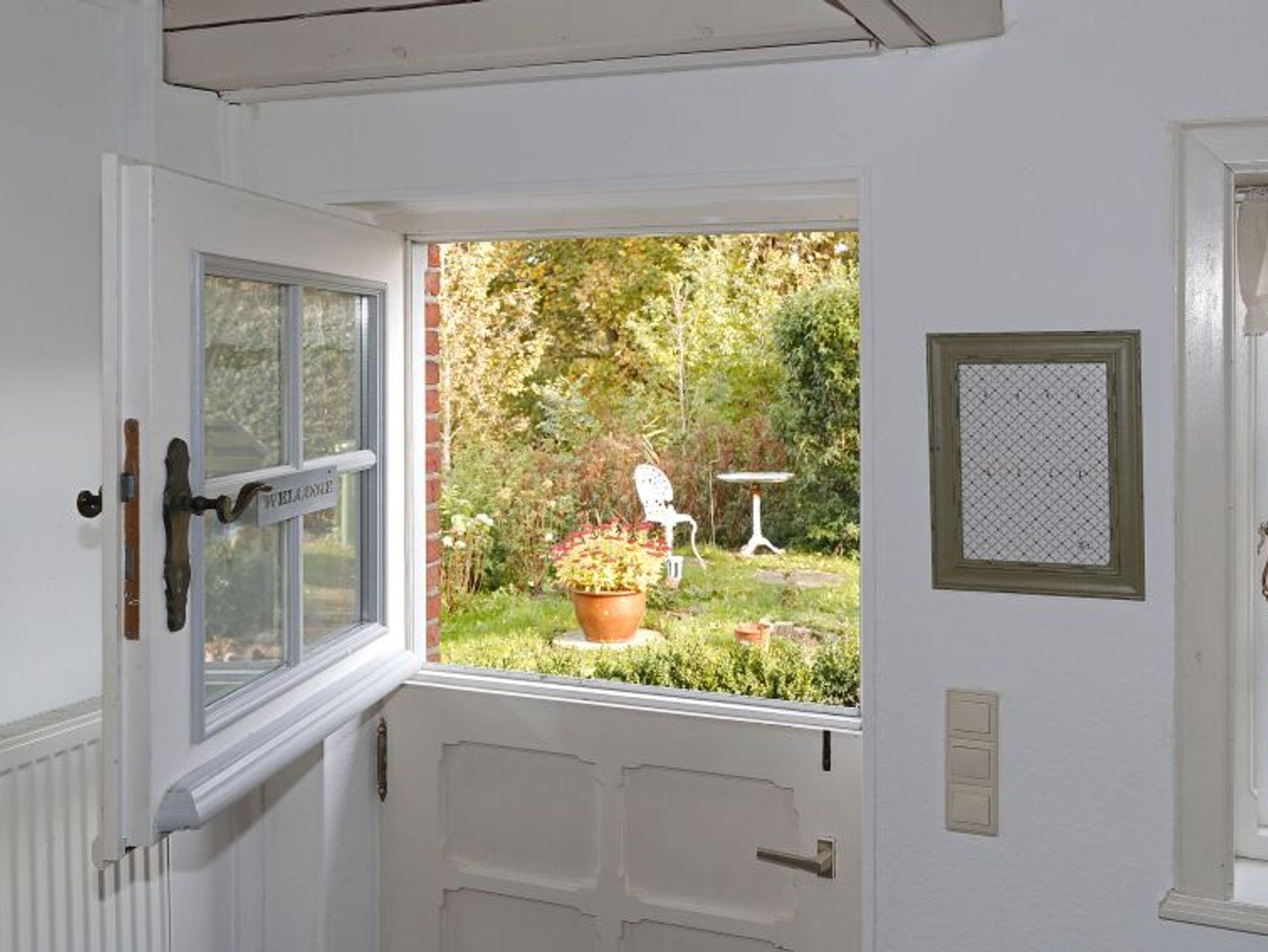Die Ferienwohnung Weerm befindet sich in einem reetgedeckten Friesenhaus, mit typischen Holzsprossenfenstern, von 1850.