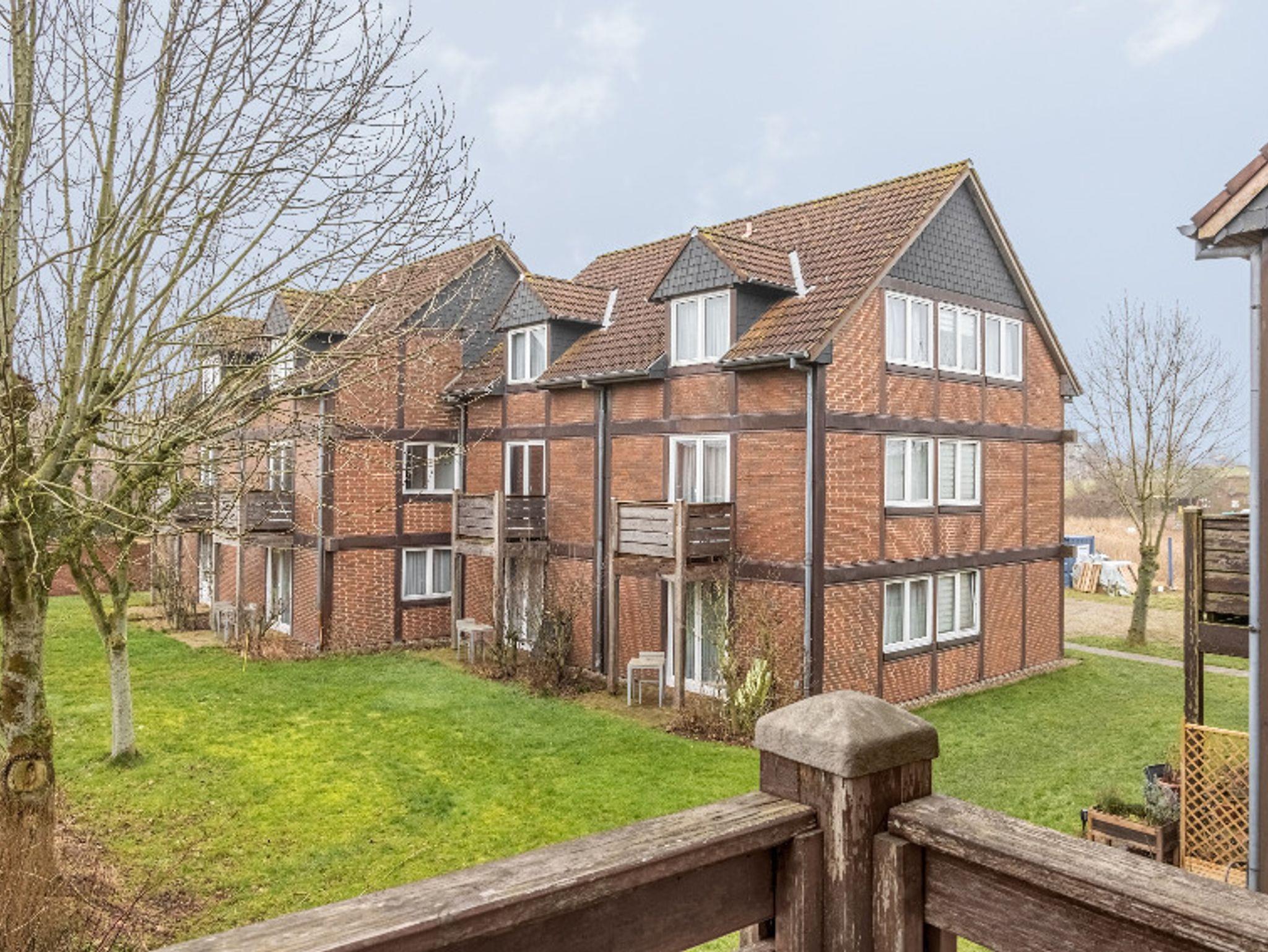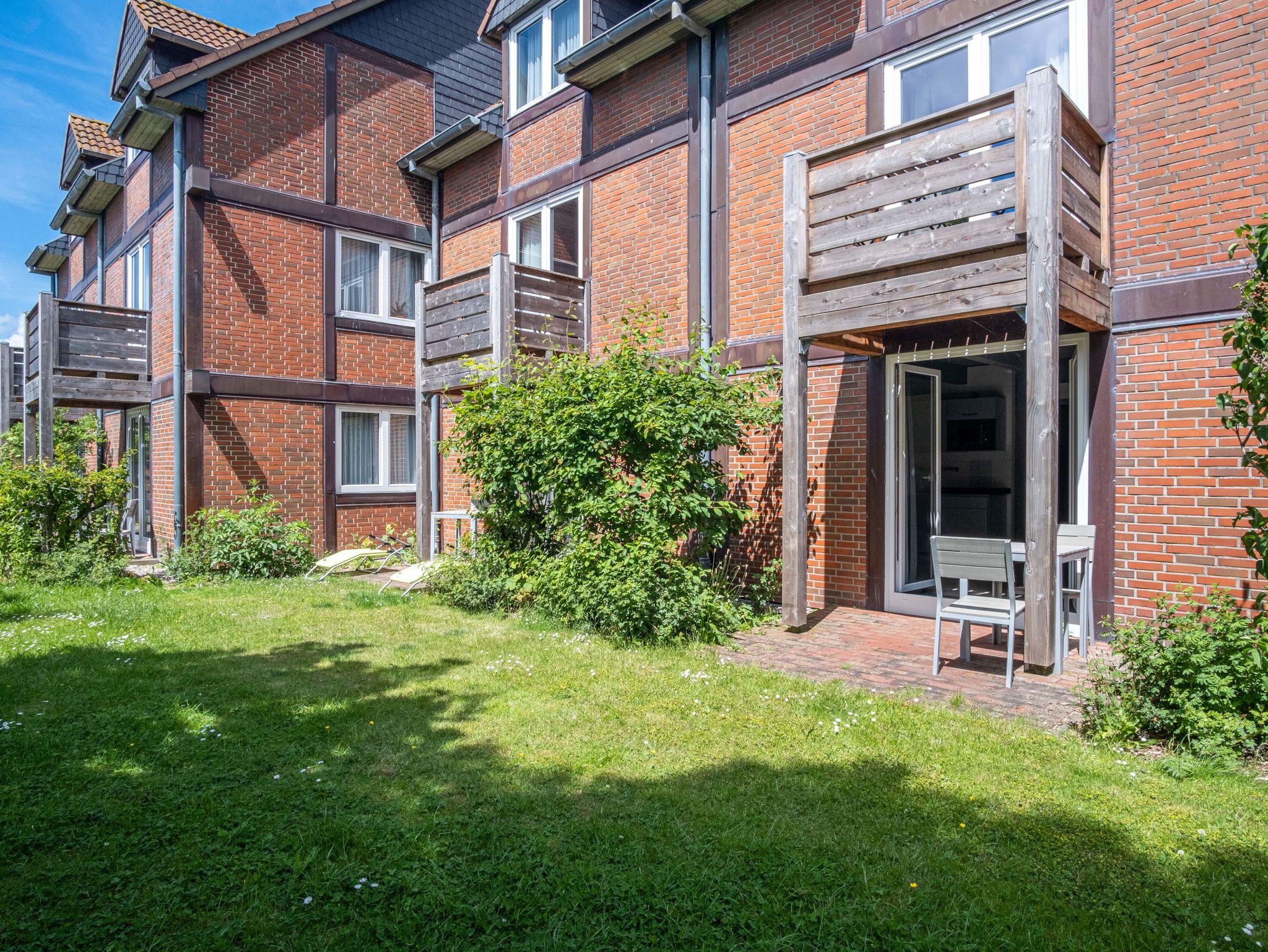 Eine weitläufige Grünanlage rahmt die Häuser im Fachwerkstil ein und schafft eine Oase der Ruhe. Liegewiesen und Grünanlagen laden zum Entspannen und Verweilen ein.