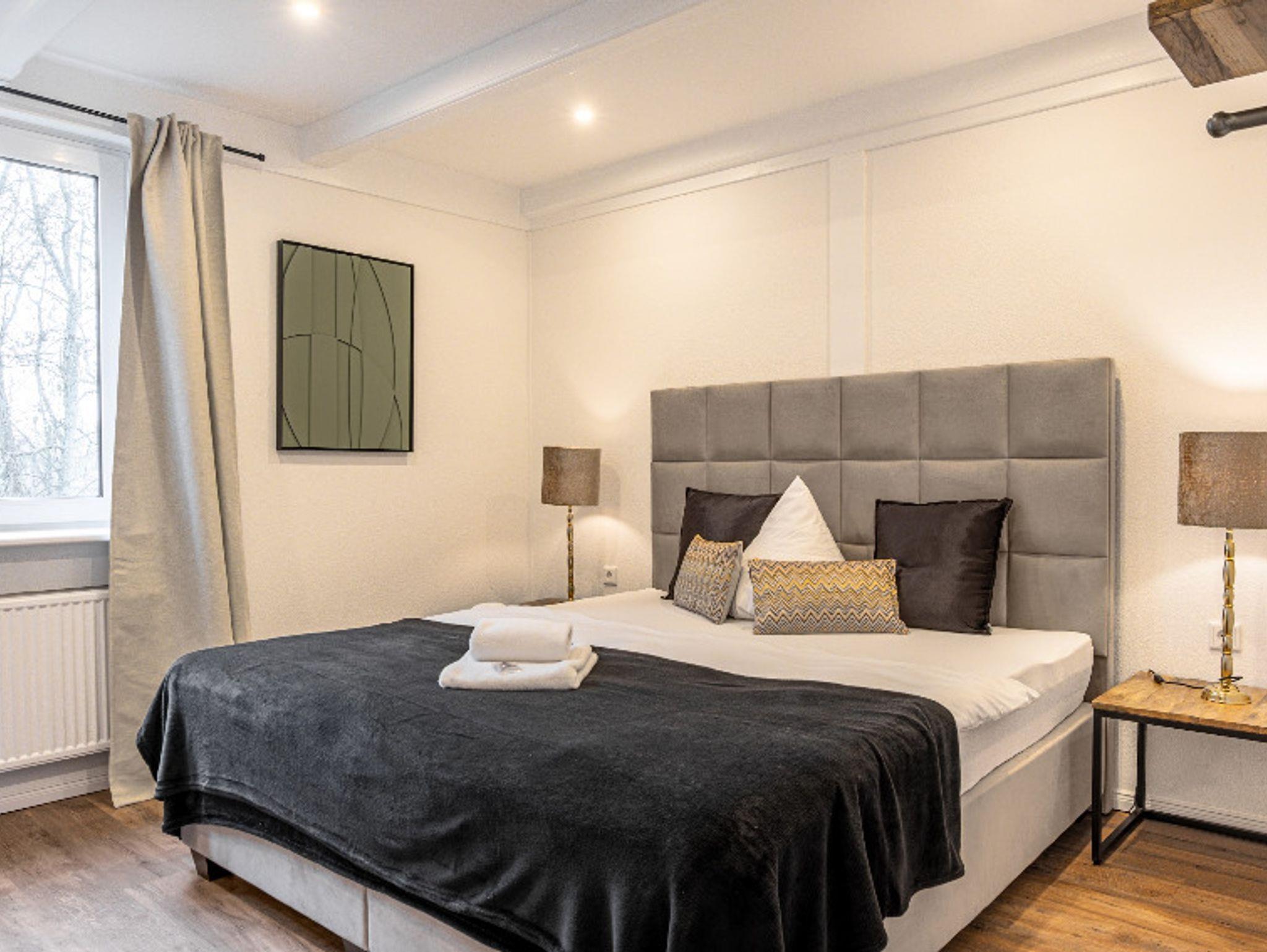 Du wachst morgens im gemütlichen King-Size - Bett Deines stilvoll eingerichteten Schlafzimmers auf und begibst Dich auf den Balkon. Genieße die aufgehende Sonne und die frische Luft. Hier kannst Du entspannt mit einem Frühstück starten oder aber auch den Abend bei einem Getränk ausklingen lassen.