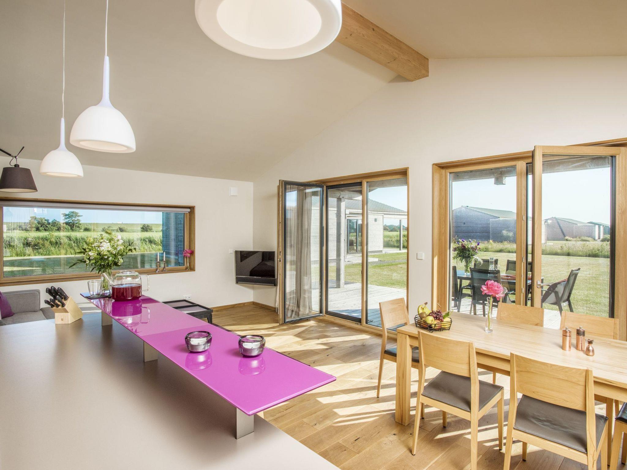 Der großzügige Wohnraum (40 m²) mit Essbereich, offener Küche und Tresen verfügt über einen 40-TV mit SONOS Soundbar. Die Soundanlage kann über Ihr Smartphone mittels SONOS-App gesteuert werden. Die zwei Schlafzimmer verfügen jeweils über ein Doppelbett (160x200) und einen großen Einbauschrank. Bei Bedarf kann ein Zustellbett (80x200, gegen Gebühr) ergänzt werden. Ein Schlafraum ist mit einem 32-TV ausgestattet. Alle Küchengeräte wie Induktionsherd, Spülmaschine und Kühlschrank mit 4-Sterne-Gefrierfach sowie Waschmaschine und Trockner stammen aus dem Hause Miele. Dank eines hochmodernen Glasfaseranschlusses (250 MBit) ist eine leistungsstarke Internetverbindung vorhanden (z.B. für Streaming). Das WLAN im Haus kann auf Wunsch deaktiviert werden.