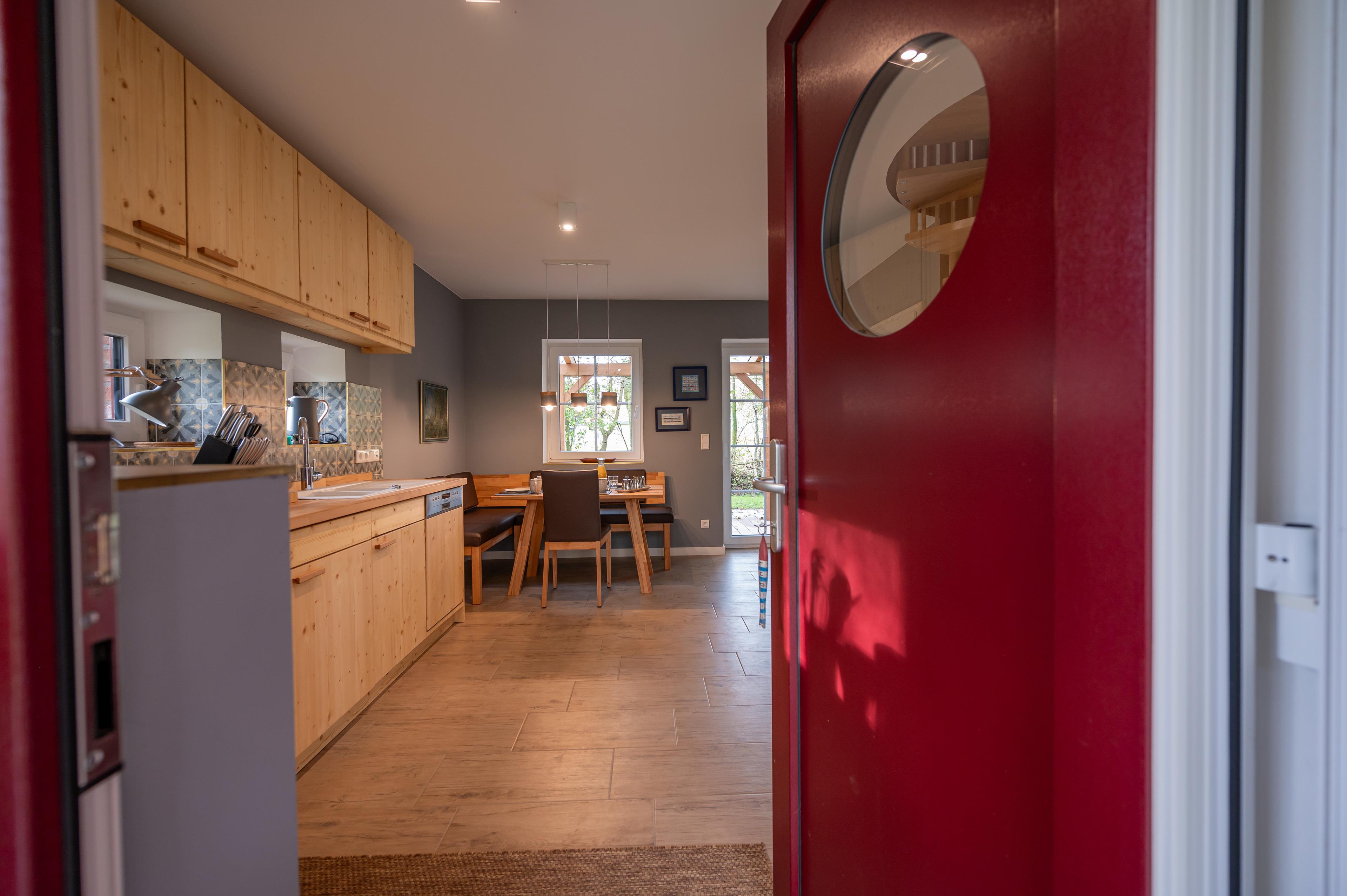 Für das Haus wurden nur hochwertige Materialien wie Lerchenholz verwendet. Die Möbel sind alle massiv (kein Pressspan), auch die Küche ist eine massive Vollholzküche. Im Badezimmer sind hochwertige Armaturen verbaut wie auch eine Rainbow-Dusche.