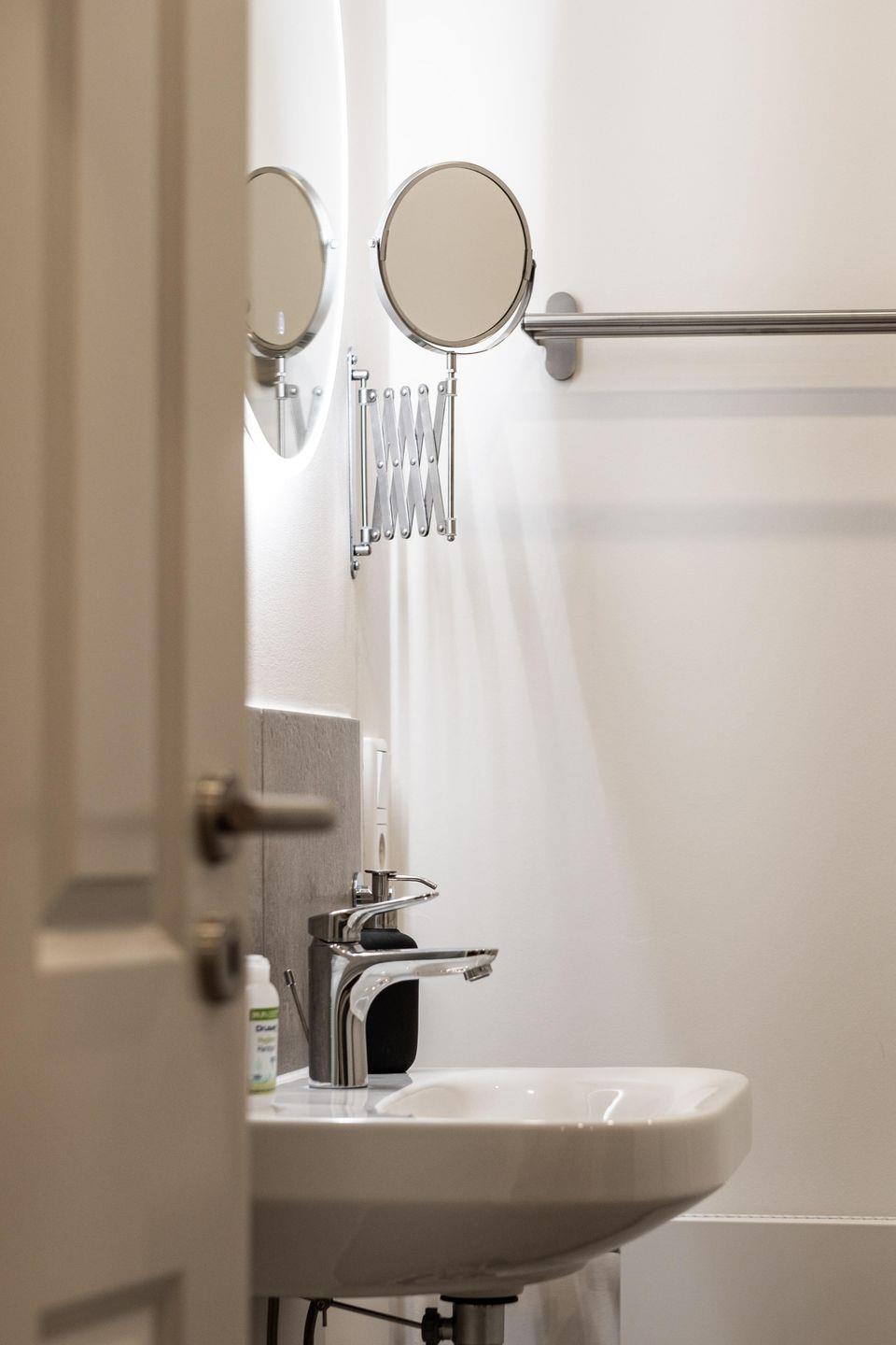 Das moderne Badezimmer ist mit einer Dusche, einem Haartrockner und Pflegeprodukten wie Seife und Shampoo ausgestattet. Ein Ganzkörperspiegel sowie frische Hand- und Badetücher sind selbstverständlich vorhanden und sorgen für zusätzlichen Komfort.
