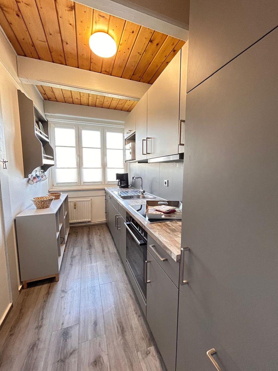 Die separate Küche ist modern ausgestattet mit Cerankochfeld, Backofen, Mikrowelle, Kühlschrank, Geschirrspüler, Kaffeemaschine, Toaster und Wasserkocher – perfekt für Selbstversorger. Das Badezimmer verfügt über Dusche, WC und Fön.