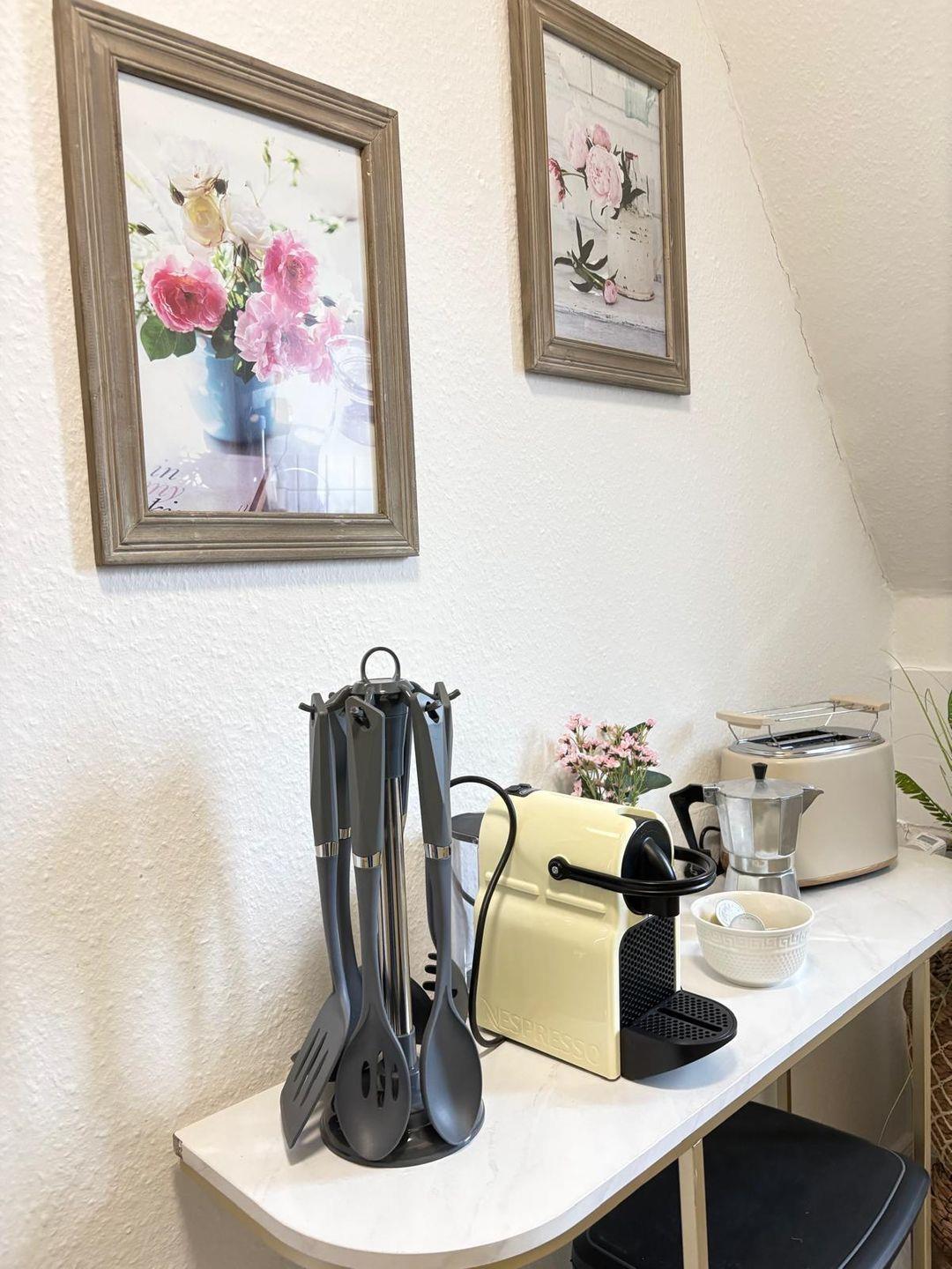 Die voll ausgestattete, geschlossene Küche lässt keine Wünsche offen und bietet Ihnen neben einem 4-Platten-Herd auch einen Backofen (Elektroanschluss), eine Mikrowelle, einen Kühlschrank mit Gefrierfach, eine Spülmaschine, Toaster, Wasserkocher, Mixer sowie sämtliches Geschirr und Besteck. Ein separater Essbereich mit Esstisch steht ebenfalls zur Verfügung und ermöglicht gemeinsame Mahlzeiten in freundlicher Atmosphäre.