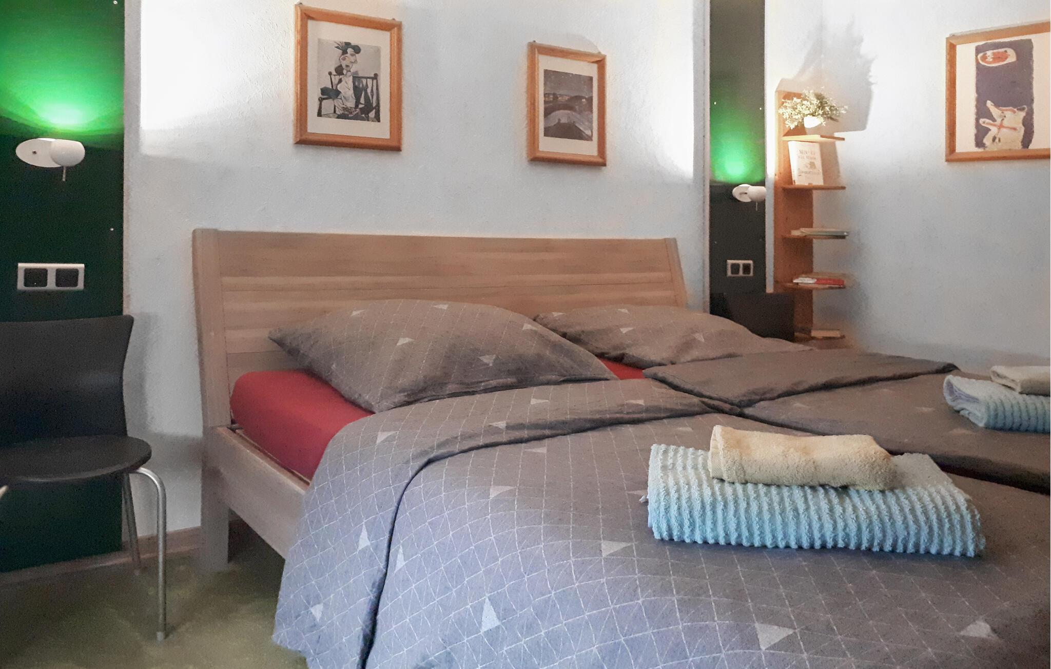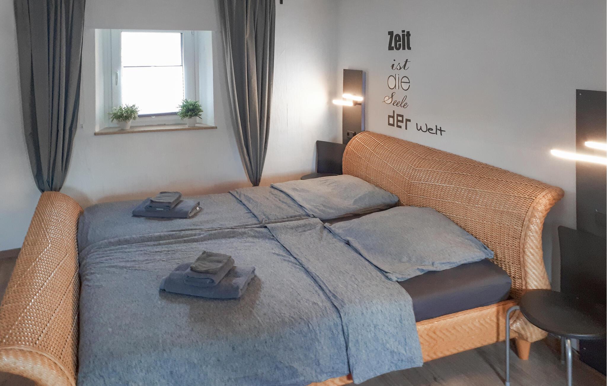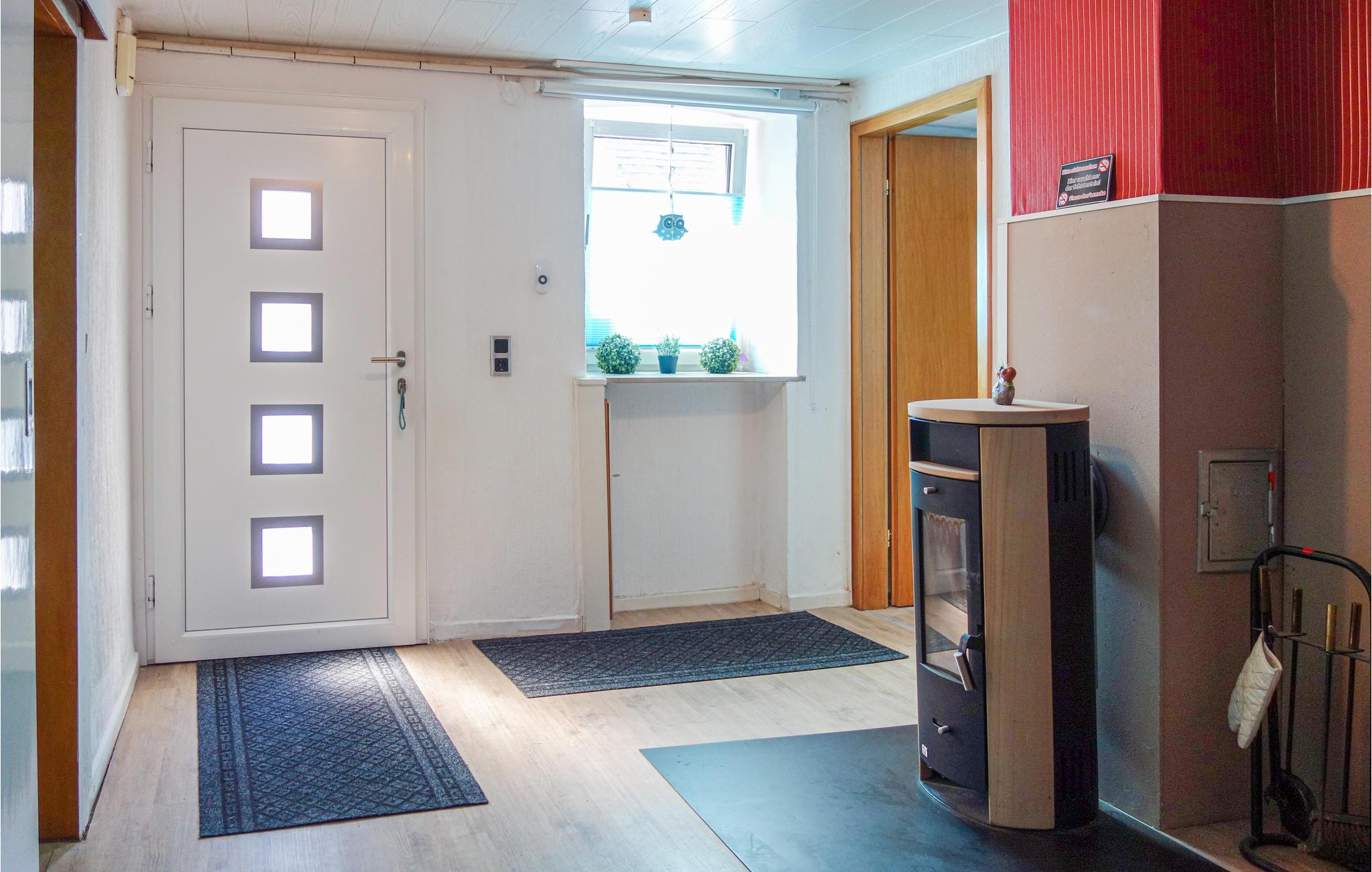 Nyd en ubesværet ferie i Eifel med familien eller venner. Denne dejlige ferielejlighed ligger kun et stenkast fra Kasselburg, ikke langt fra den populære by Gerolstein. Den restaurerede feriebolig rummer et soveværelse og et børneværelse i stueetagen. I indgangsområdet står en pejs. På 1. sal er de restende soveværelser, badeværelset, stuen og det rummelige køkken, hvor der bl.a. er en Senseo kaffemaskine (medbring selv jeres yndlingskaffepuder). Ved siden af er et aflåseligt rum til cykler samt vaskemaskine og tørretumbler.