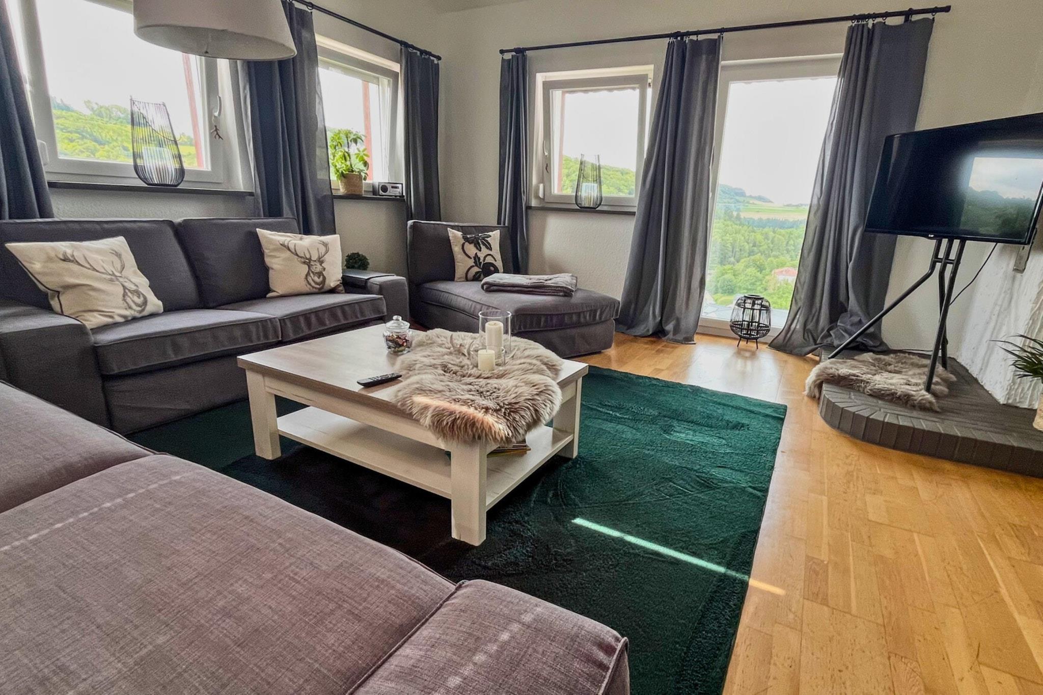 Velkommen til ferielejligheden "Eifelglück", som ligger på loftet i vores hus. Denne rummelige bolig har plads til op til seks personer og omfatter to soveværelser, en stilfuldt møbleret stue, et fuldt udstyret køkken og et moderne badeværelse. Efter en begivenhedsrig dag i Eifel finder du det ideelle sted at slappe af og koble fra. Et iøjnefaldende træk ved lejligheden er tagterrassen, der blev færdiggjort i 2022. Derfra kan du nyde en imponerende udsigt over Kasselburg Slot og have mulighed for at tilbringe uforglemmelige timer med familie eller venner. Uanset om I griller sammen, nyder en forfriskende drink i solen eller slapper af med en panoramaudsigt over de maleriske omgivelser - tagterrassen vil uden tvivl blive et af dine yndlingssteder at bo på under din ferie. Ferielejligheden "Eifelglück" imponerer med sin smagfulde indretning og er udstyret med alle de faciliteter, der er nødvendige for et behageligt og ubekymret ophold. Uanset om du vil udforske de varierede omgivelser, tage på lange vandreture og cykelture eller blot nyde et øjeblik med fred og ro, tilbyder vores bolig det ideelle udgangspunkt for alle dine aktiviteter. Vi vil med glæde byde jer velkommen som gæster i ferielejligheden "Eifelglück" og sørge for, at I får et uforglemmeligt ophold i Eifel-regionen.