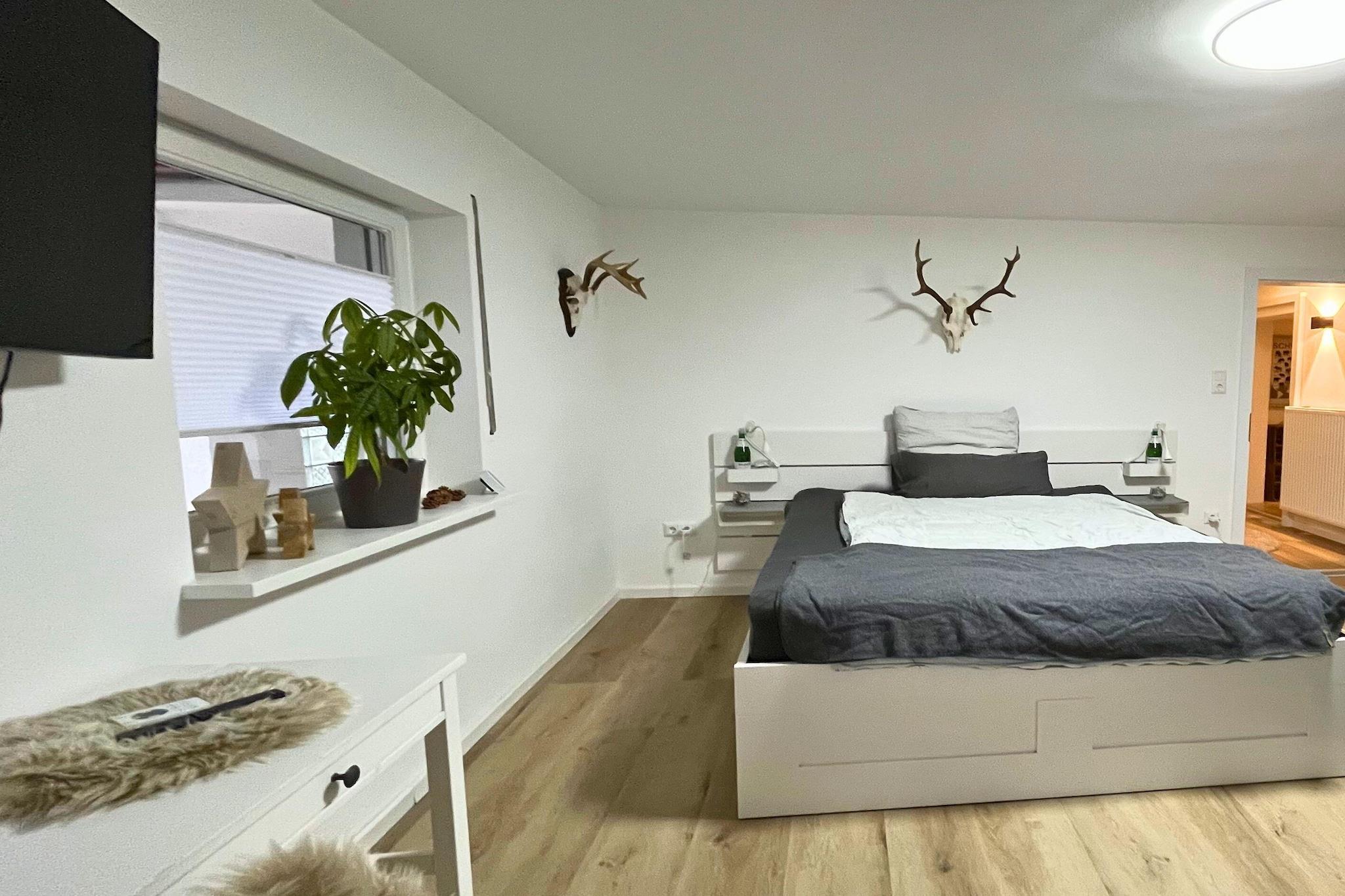 Fra 1. januar 2025 tilbyder vi et hyggeligt og indbydende gæsteværelse i ferielejligheden og lejligheden Eifelglück, perfekt til et afslappende ophold i den maleriske Eifel-region. Her finder du (næsten) alt, hvad du behøver for en komfortabel miniferie – fra stilfulde møbler til en fredelig beliggenhed omgivet af natur. Lad dig overbevise af gæstfriheden og charmen i vores gæsteværelse, og nyd uforglemmelige øjeblikke i Eifel-regionen. Vores gæsteværelse er omhyggeligt designet til at tilbyde dig den størst mulige komfort. Værelset er individuelt møbleret og har moderne bekvemmeligheder for at gøre dit ophold behageligt. Du finder et gæsteværelse med egen indgang og eget badeværelse. Der er ikke noget køkken, men der er kaffemaskine og elkedel til rådighed. Efter en begivenhedsrig dag i Eifel-regionen kan du nyde en afslappende nat i vores komfortable seng og starte dagen frisk. Vores gæsteværelse er udstyret med forskellige faciliteter for at gøre dit ophold så behageligt som muligt. Værelset har gratis Wi-Fi, fladskærms-tv og en lille kaffemaskine. De smagfulde møbler sørger for, at du straks føler dig hjemme og kan slappe af. Vi tilbyder også en smuk udsigt over den omkringliggende natur, hvilket gør dit ophold på vores gæsteværelse endnu mere behageligt. Vores gæster er vores højeste prioritet. Vi lægger stor vægt på personlig service og gæstfrihed. Uanset om du har spørgsmål til dit ophold, har brug for tips til udflugter eller ønsker at udtrykke dine særlige ønsker – er vi altid her for dig. Vi ønsker, at du føler dig hjemme og nyder dit ophold fuldt ud.