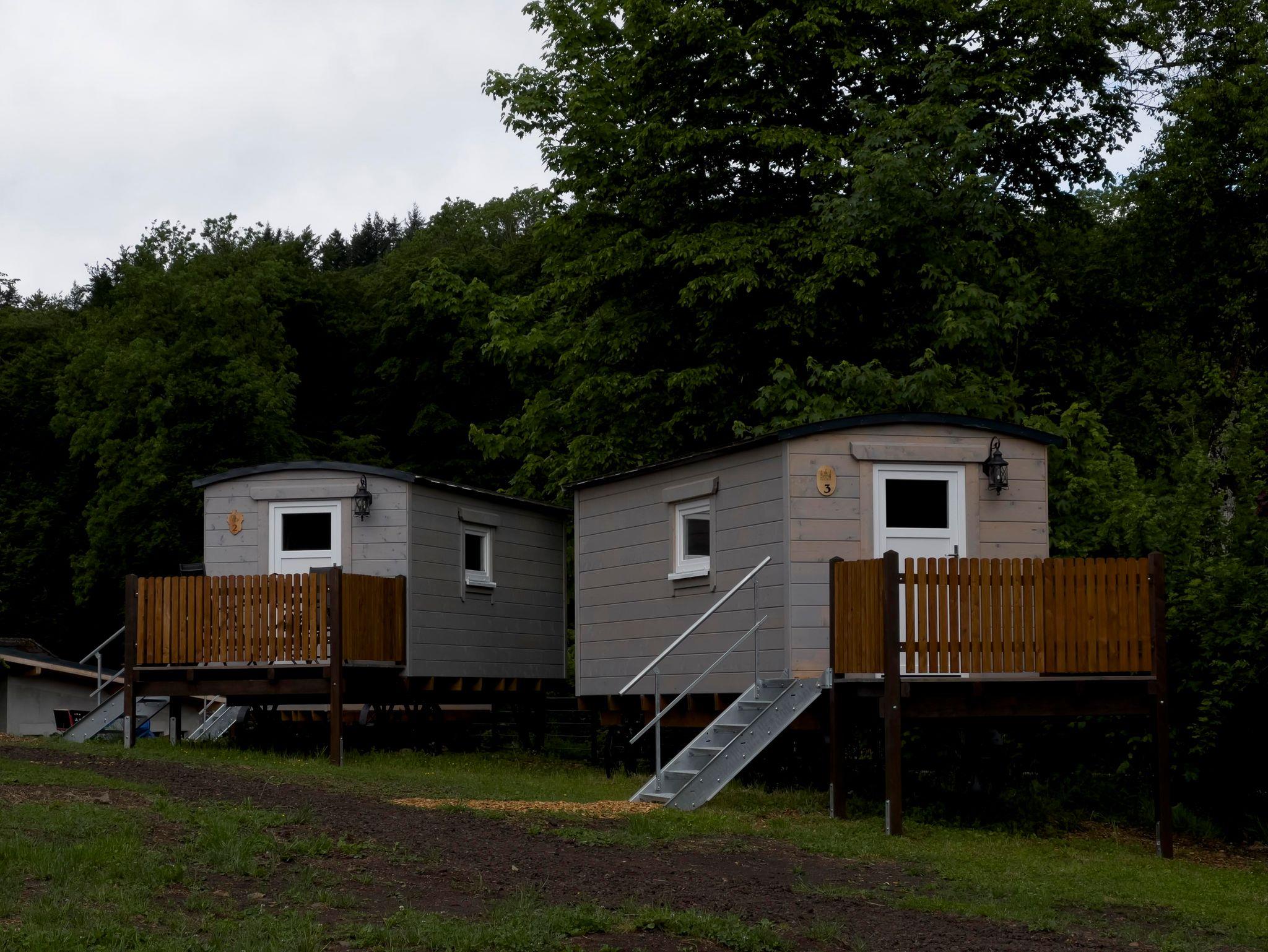 Die 3-Bett-Karren mit den Namen „Schäferkarren“, „Einhornhütte“, „Dumbo-Wagen“, „Bloxberg“, „Burgblick“ und „Köhlerwagen“ verfügen über ein Doppelbett, ein Etagenbett und auf Wunsch auch über ein Kinderbeistellbett.