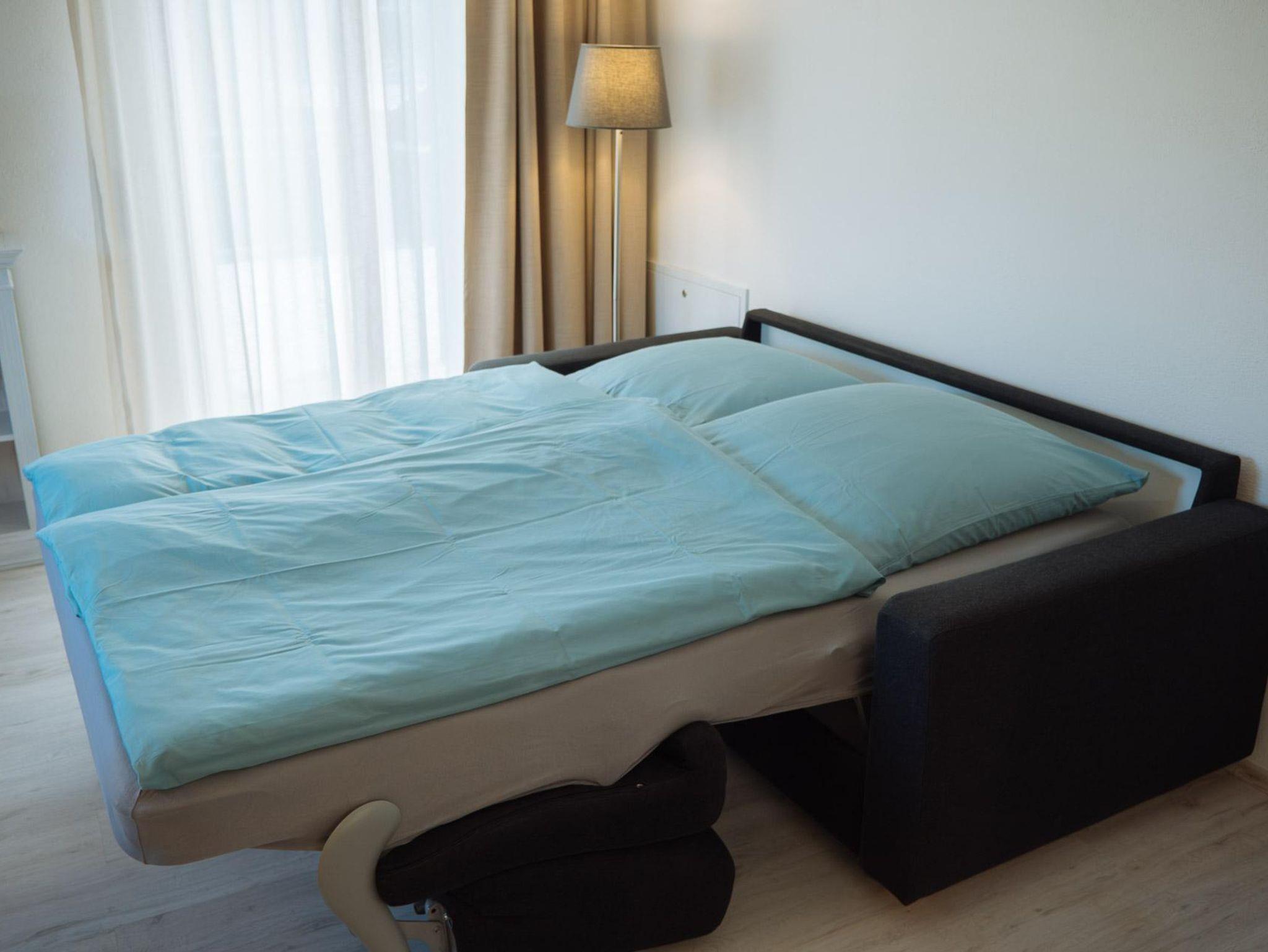 Die Standartbelegung für diese Wohnung ist zwei Personen. Das Sofa in der Wohnküche lässt sich in ein vollwertiges Betten (140 cm breit mit Lattenrost und Kaltschaummatratze) umwandeln, so dass auch eine Übernachtung mit vier Personen möglich ist. Alternativ können sie - soweit frei - auch eine oder zwei der anderen beiden Ferienwohnungen Wohnungen 2 und 3) direkt nebenan dazumieten. Den 38 qm großen Gesellschaftraum, ebenfalls mit moderner Einbauküche und Kaminofen, können Sie direkt bei der Vermieterin mieten.