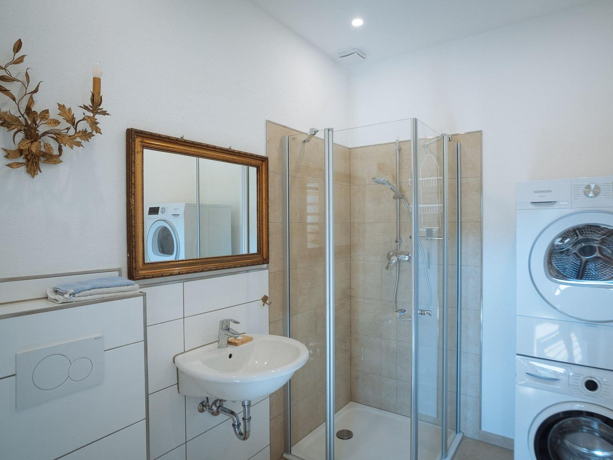 Das Appartement 4 ist für Menschen mit Mobilitätseinschränkungen geeignet. Es liegt ebenerdig und ist stufenfrei zu erreichen. Auch die Dusche ist ebenerdig mit Duschhocker und Haltegriff. Die Türbreiten entsprechen der Barrierefreiheit und auch die nötige Bewegungsfreiheit für Menschen mit Behinderung ist gegeben.