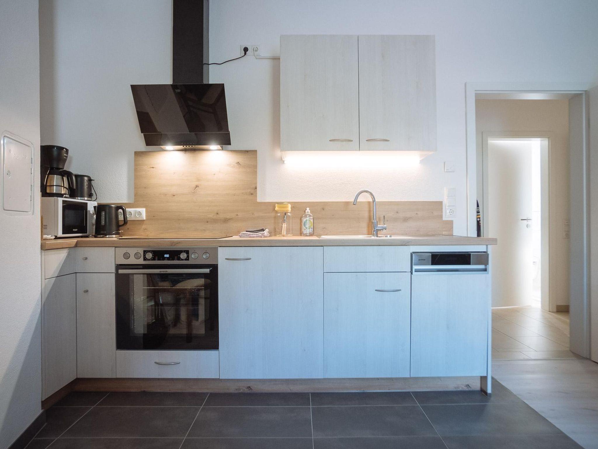 Die Standartbelegung für diese Wohnung ist zwei Personen. Das Sofa in der Wohnküche lässt sich in ein vollwertiges Betten (160 cm breit mit Lattenrost und Kaltschaummatratze) umwandeln, so dass auch eine Übernachtung mit vier Personen möglich ist. Alternativ können sie - soweit frei - auch eine oder zwei der anderen beiden Ferienwohnungen Wohnungen 1 und 2) direkt nebenan dazumieten. Den 38 qm großen Gesellschaftraum, ebenfalls mit moderner Einbauküche und Kaminofen, können Sie direkt bei der Vermieterin mieten.