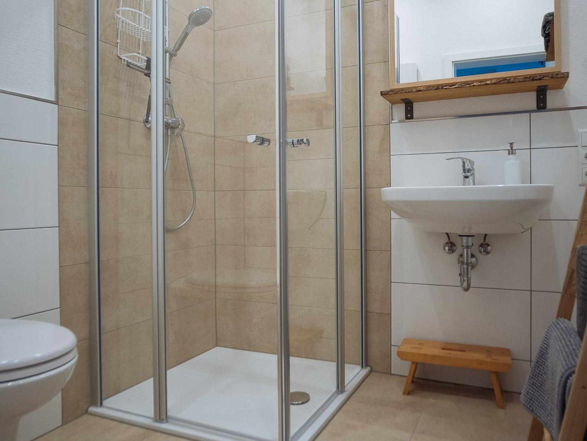 Das Appartement 4 ist für Menschen mit Mobilitätseinschränkungen geeignet. Es liegt ebenerdig und ist stufenfrei zu erreichen. Auch die Dusche ist ebenerdig mit Duschhocker und Haltegriff. Die Türbreiten entsprechen der Barrierefreiheit und auch die nötige Bewegungsfreiheit für Menschen mit Behinderung ist gegeben.