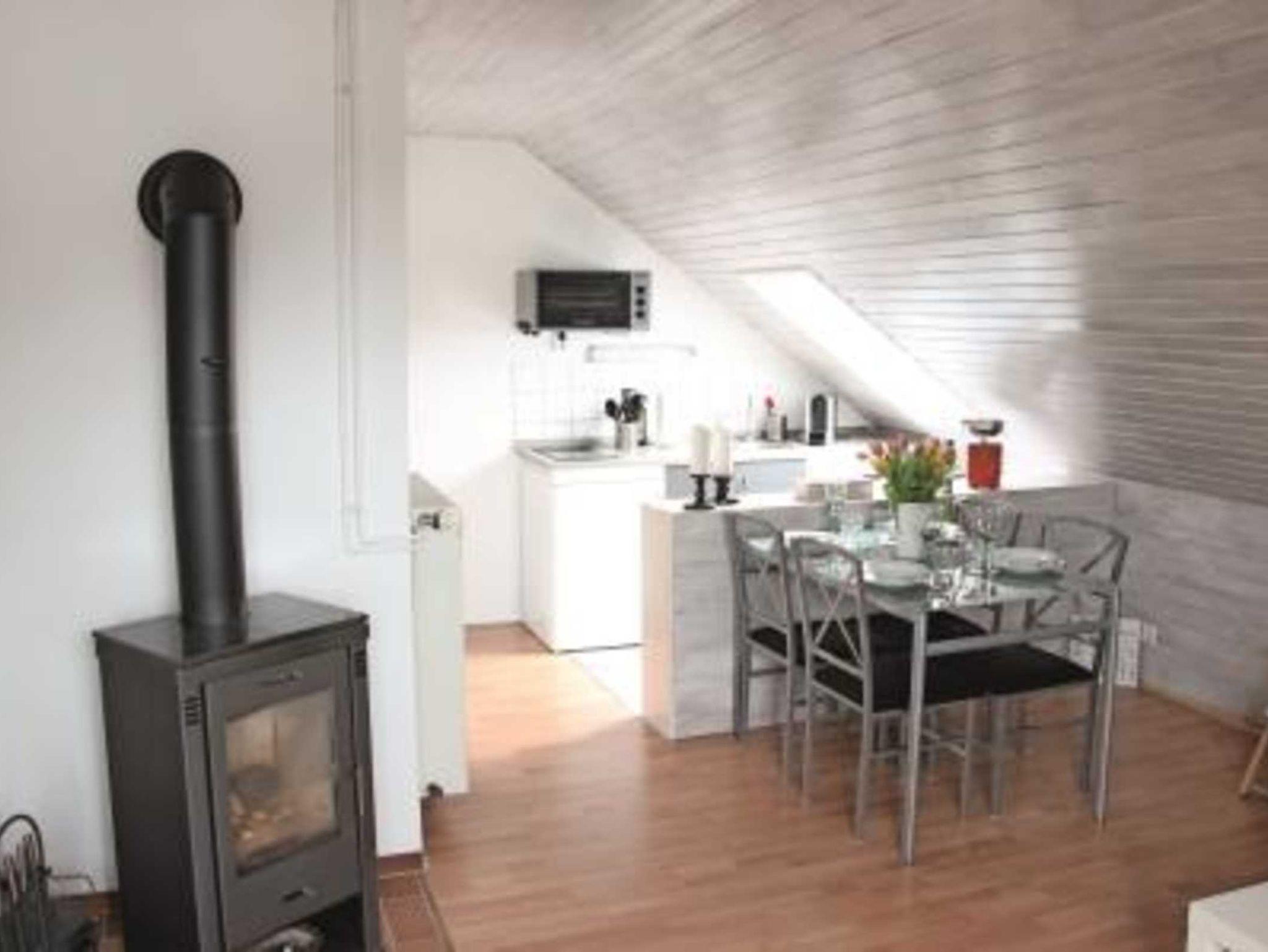 Im Wohn-/Essbereich befinden sich eine gemütliche, voll ausgestattete Küche mit Kühlschrank mit Eisfach, Toaster, Wasserkocher, Kaffeemaschine, Kapselkaffeemaschine der Firma Cremesso, Minibackofen und einer Geschirrspülmaschine.